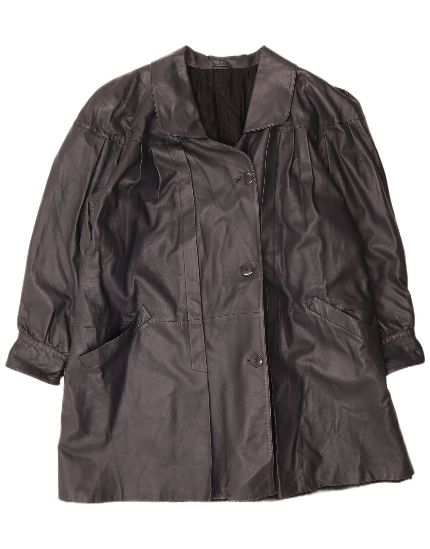 Casaco de couro superdimensionado feminino vintage IT 44 médio couro preto clássico