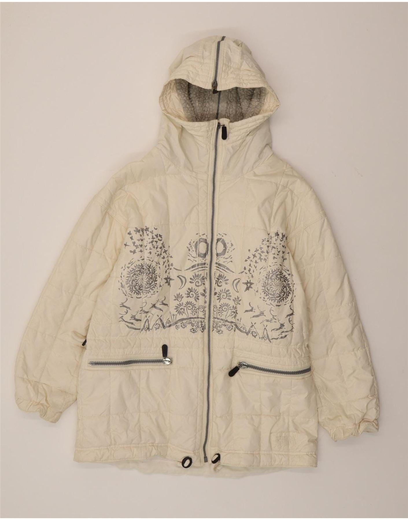 Casaco acolchoado de grandes dimensões das mulheres do vintage poliéster branco pequeno de Paisley do Reino Unido 10