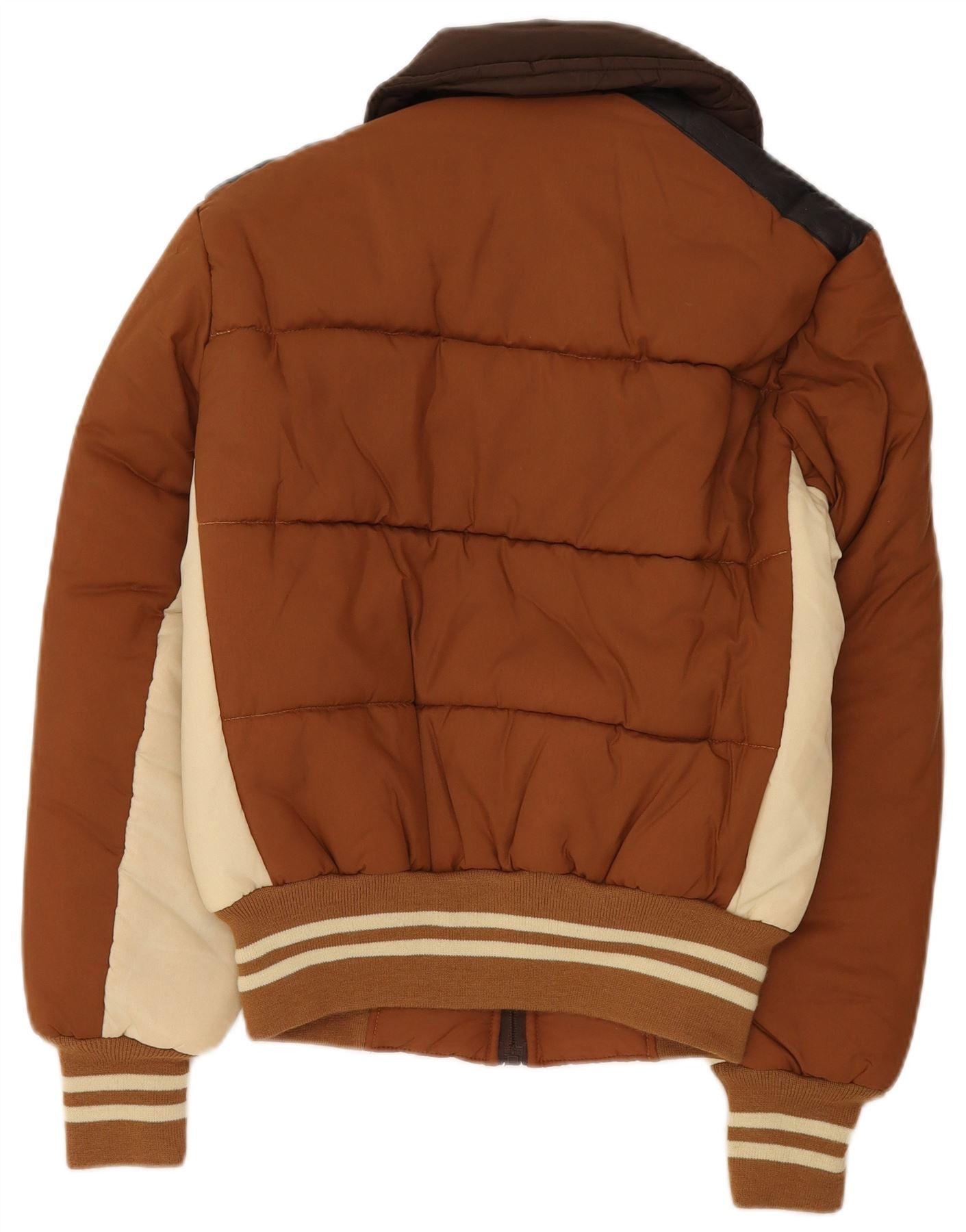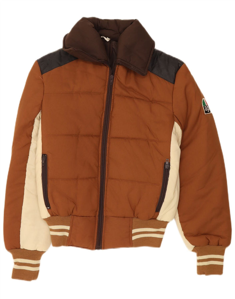Jaqueta acolchoada feminina VINTAGE de grandes dimensões Reino Unido 10 pequeno bloco colorido marrom