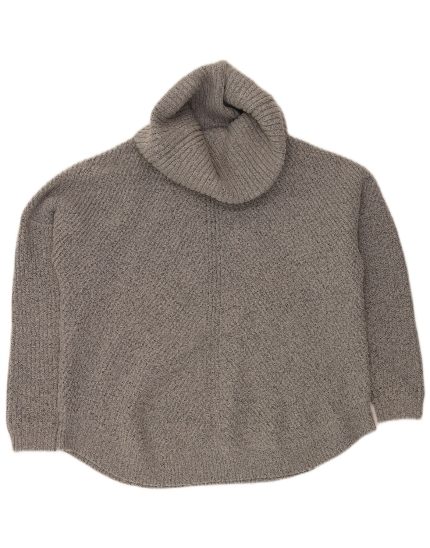 Suéter feminino VINTAGE com gola alta e gola alta Reino Unido 16 grande cinza