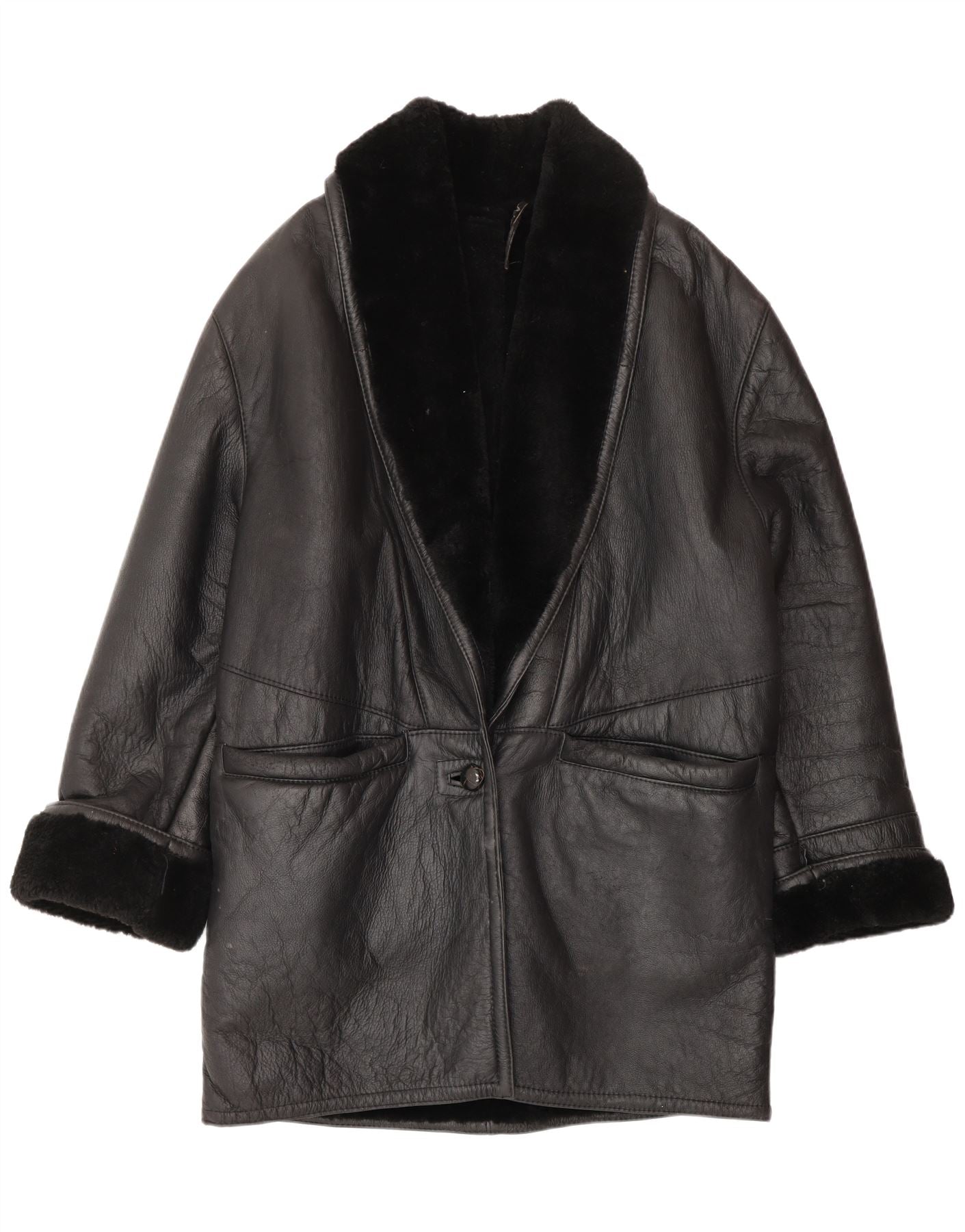 Casaco feminino oversized shearling VINTAGE Reino Unido 16 grande preto
