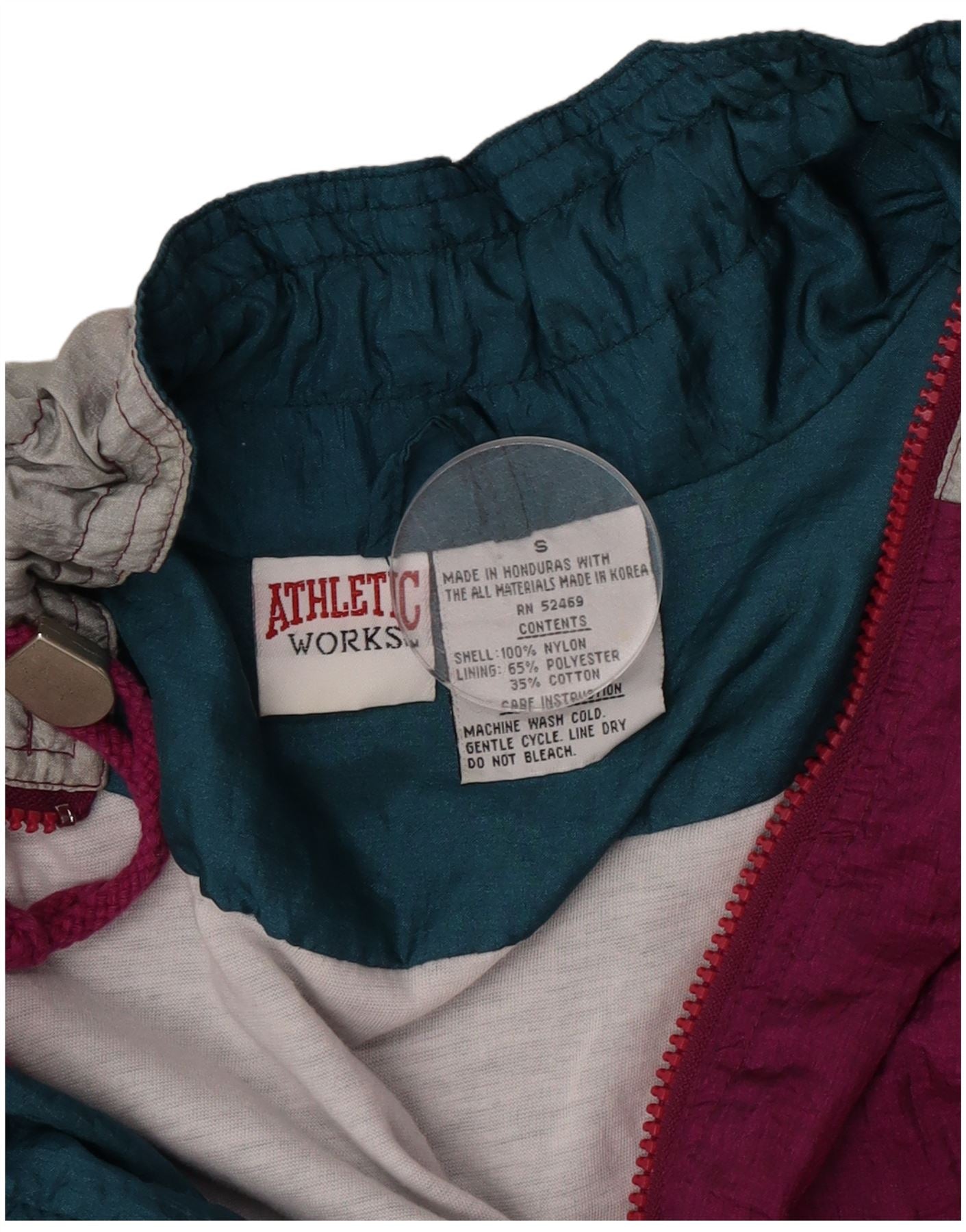 - Descrição da IA: Saia em estilo retrô com esta jaqueta esportiva vintage Athletic Works. Projetado para um ajuste descontraído, apresenta um impressionante padrão colorblock em azul-petróleo e roxo, acentuado por um logotipo sutil. O revestimento leve de náilon é perfeito para camadas, enquanto o forro de poliéster e algodão garante conforto. Com decote clássico e zíper frontal completo, esta jaqueta combina estética esportiva com uso diário. Os punhos e a bainha elásticos proporcionam um ajuste seguro, tornando-o um complemento versátil para qualquer guarda-roupa casual. Abrace as vibrações nostálgicas com esta peça única.