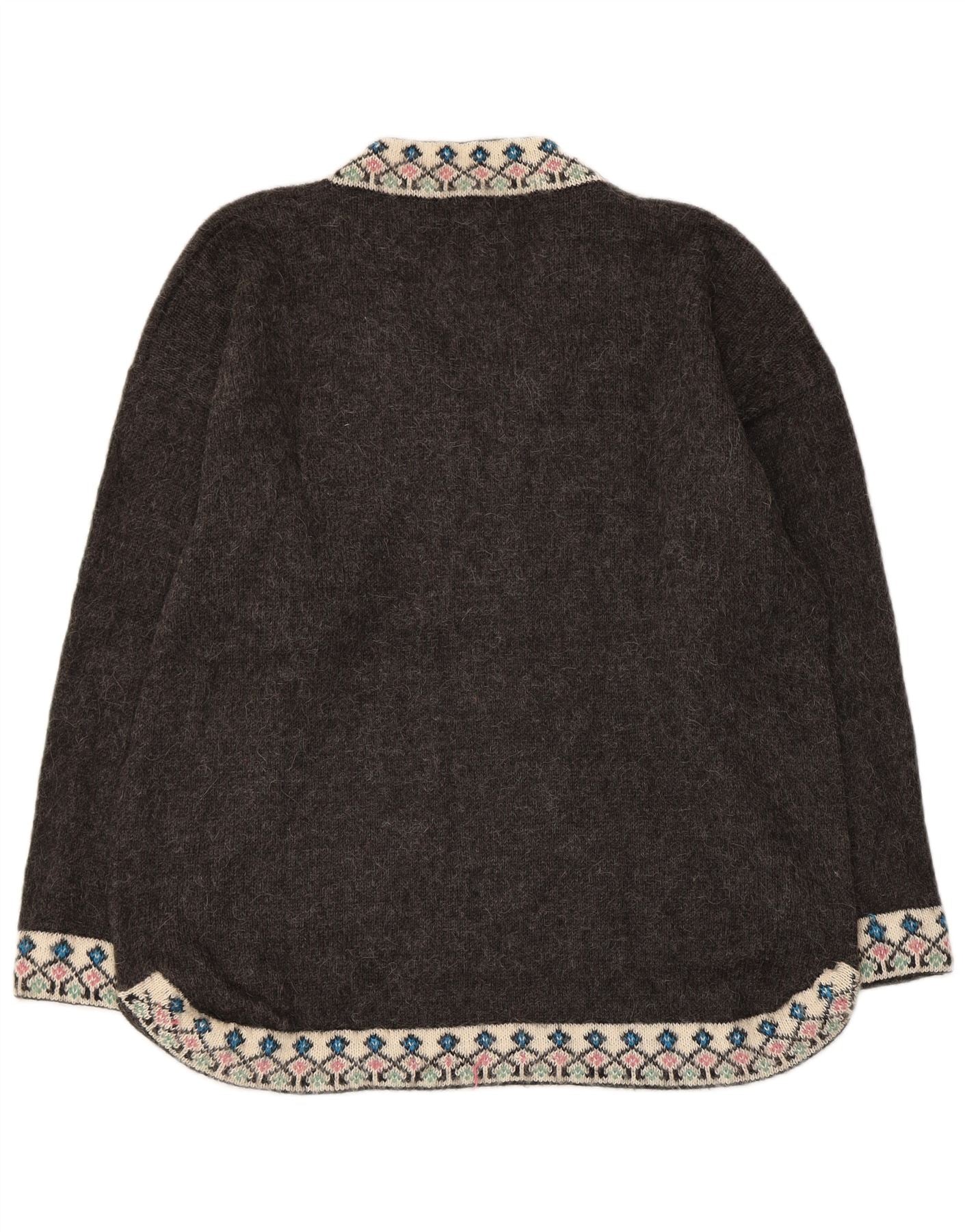 Suéter feminino VINTAGE com decote em V grande UK 18 XL cinza Fair Isle