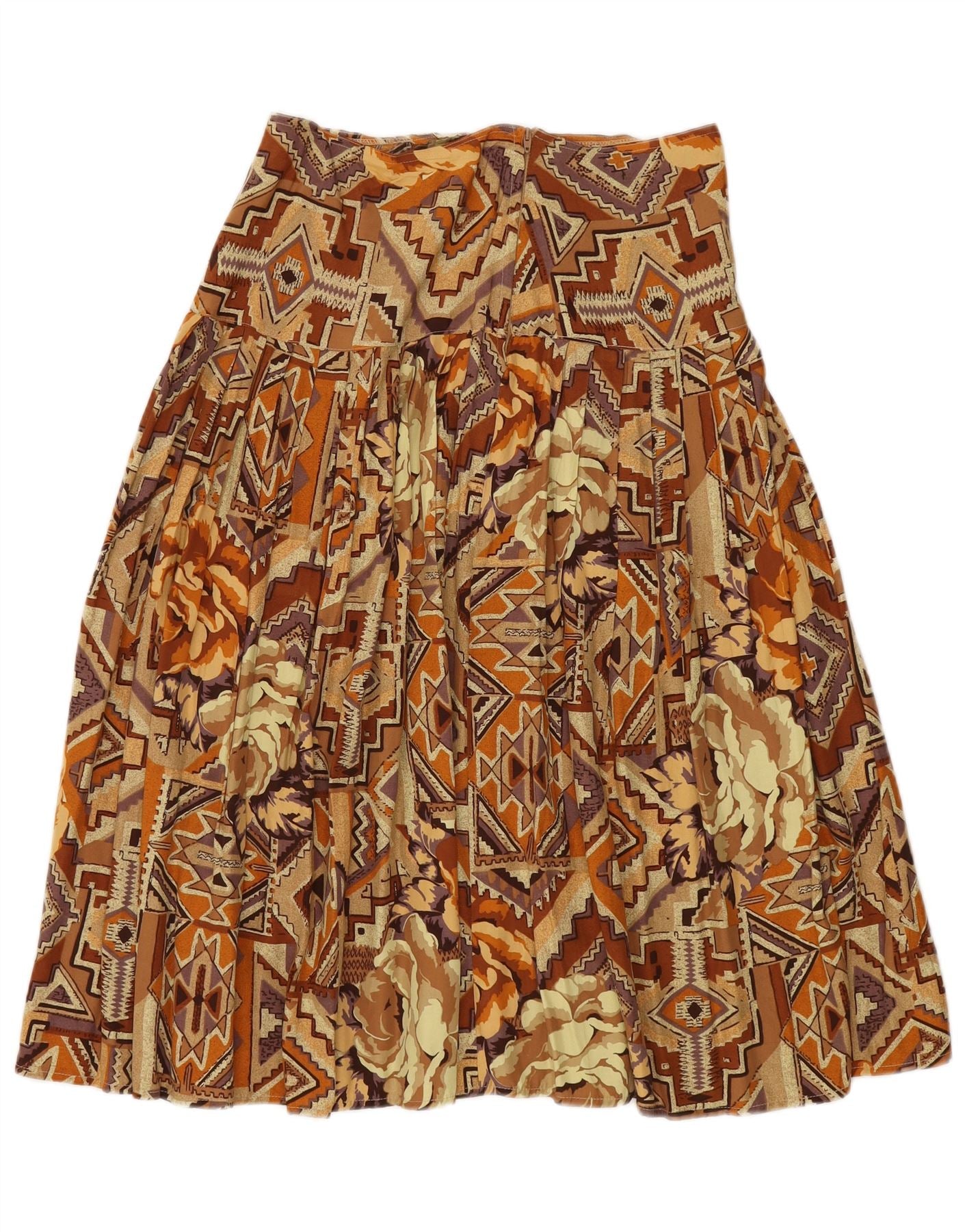 Saia plissada feminina VINTAGE médio W30 marrom patchwork algodão