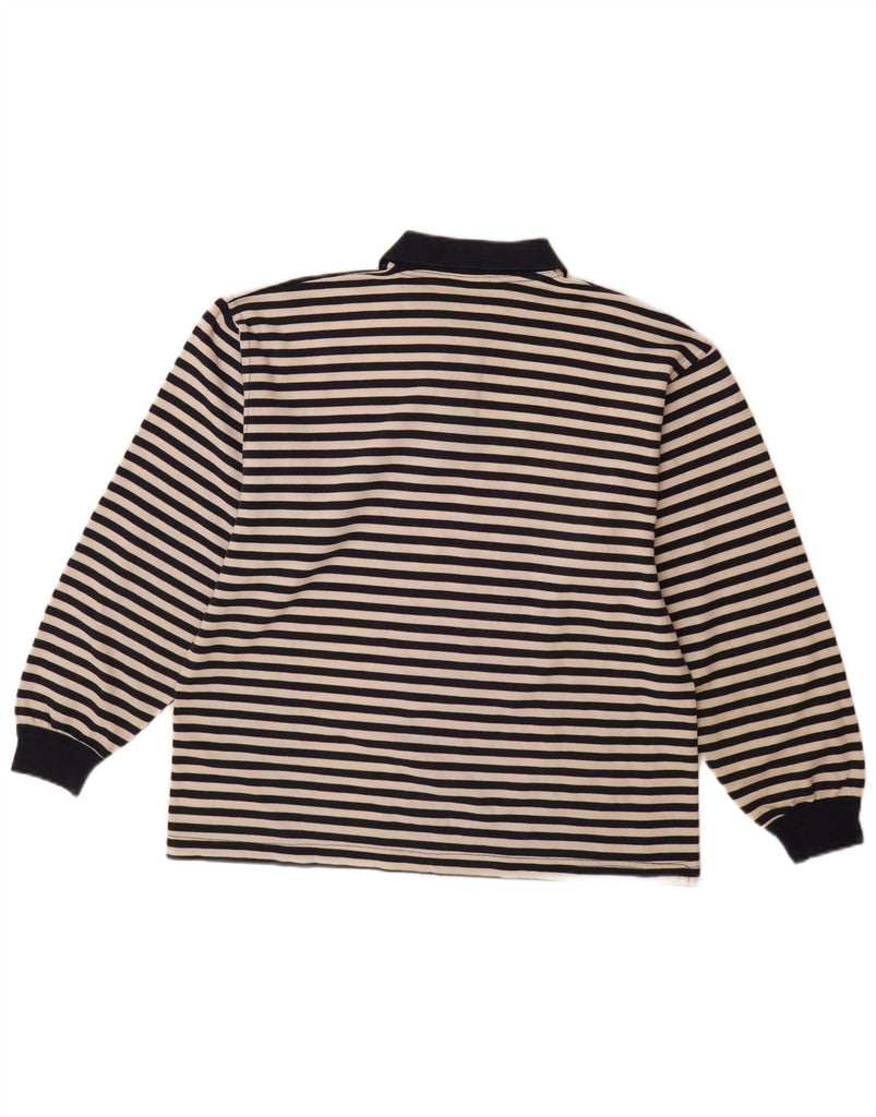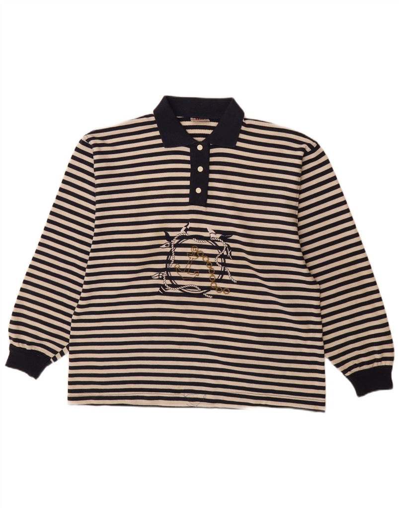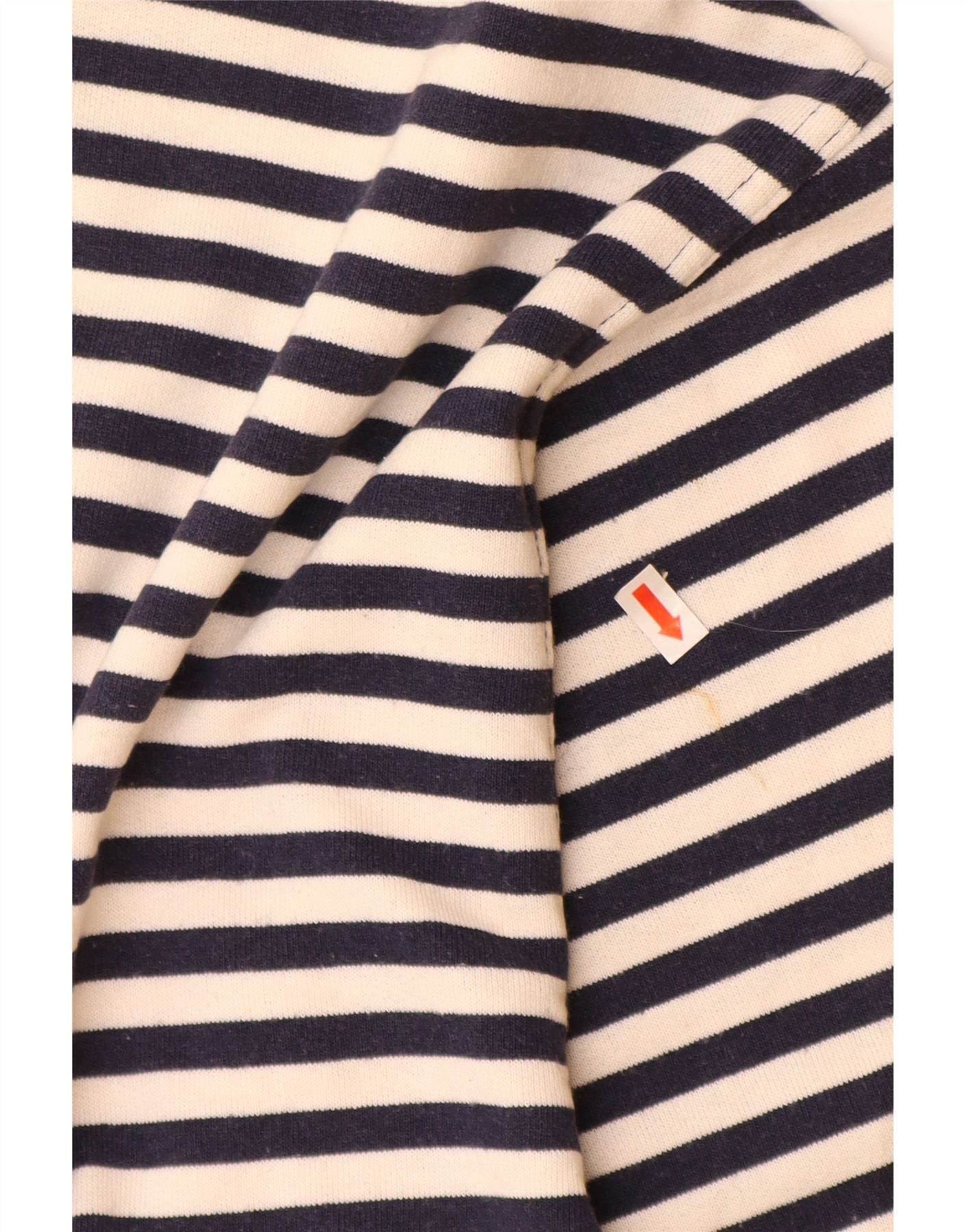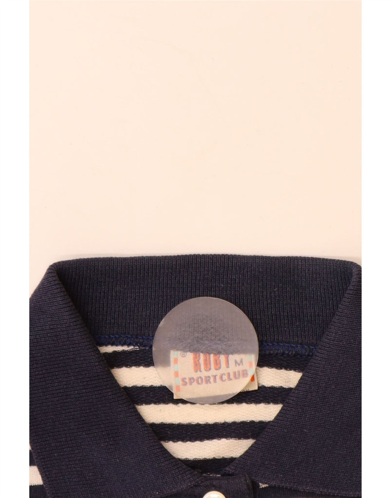 VINTAGE Womens Polo Neck Jumper Sweater UK 14 Medium Navy Blue Striped