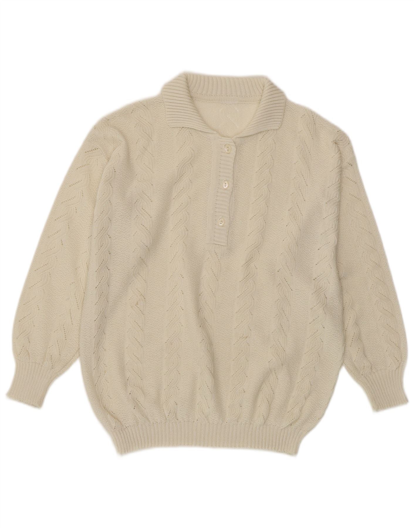 Suéter feminino VINTAGE com gola polo UK 14 médio off white