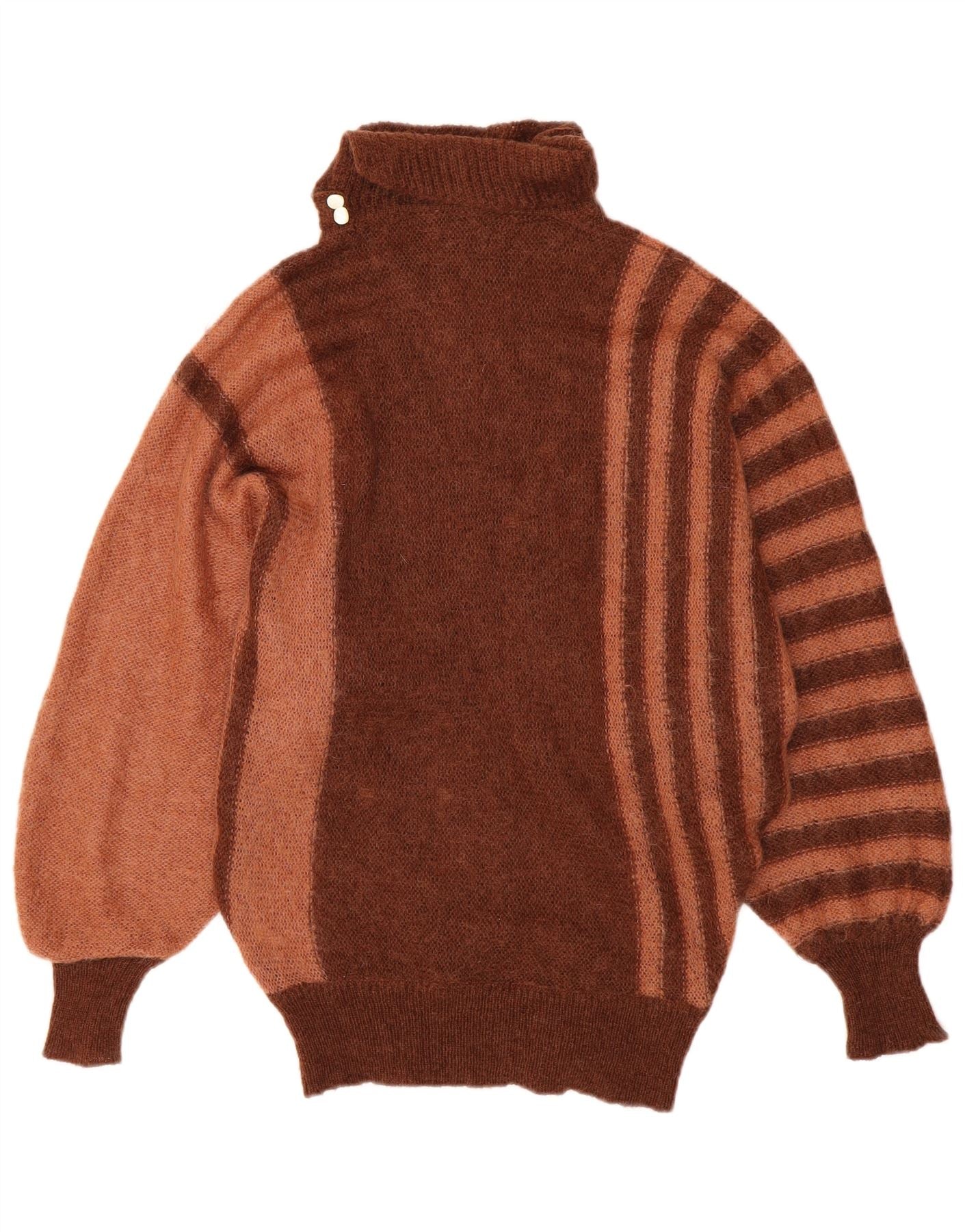 Suéter feminino VINTAGE com gola redonda Reino Unido 14 grande mohair listrado marrom