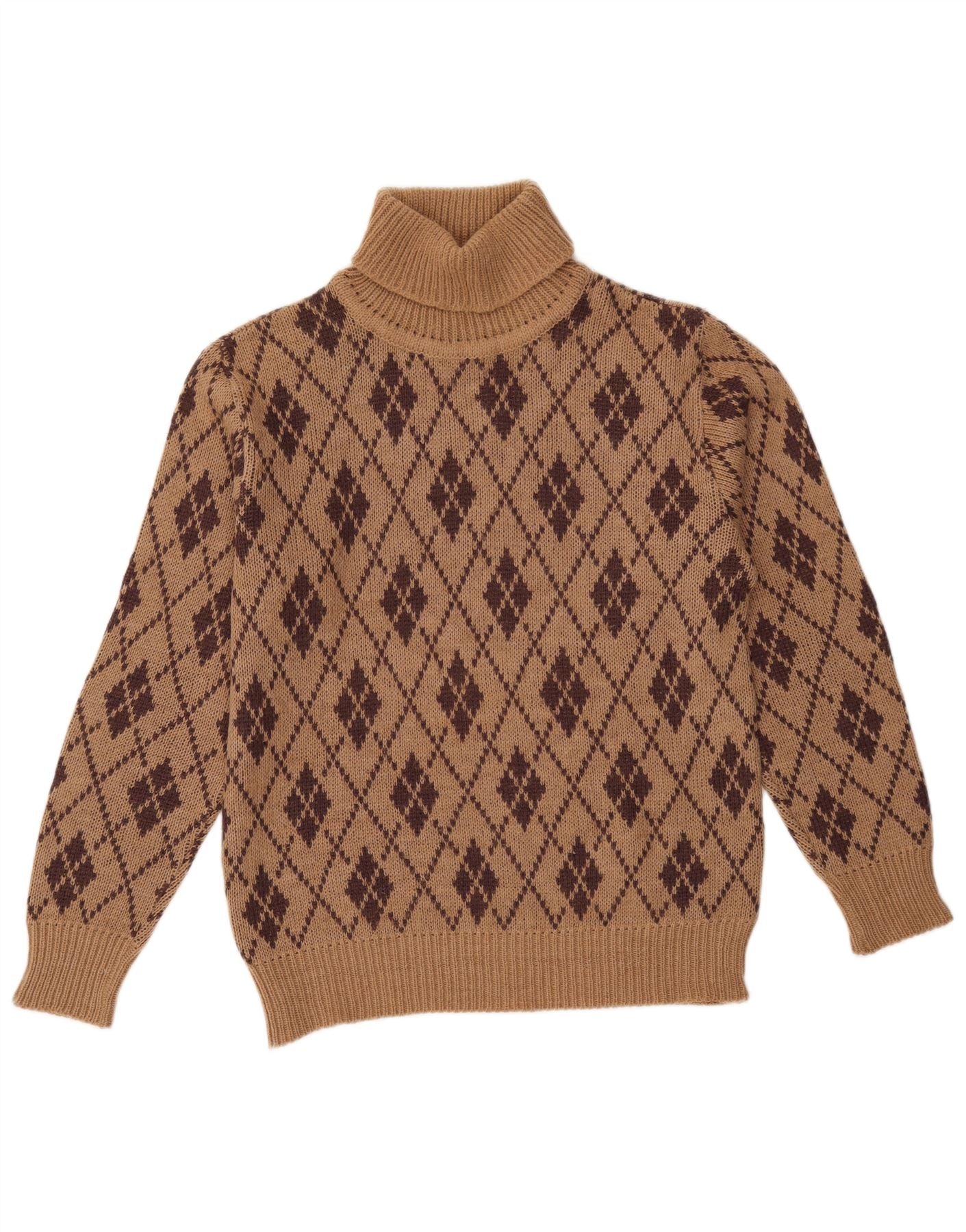 Suéter feminino VINTAGE com gola redonda Reino Unido 18 XL marrom Argyle/Diamante