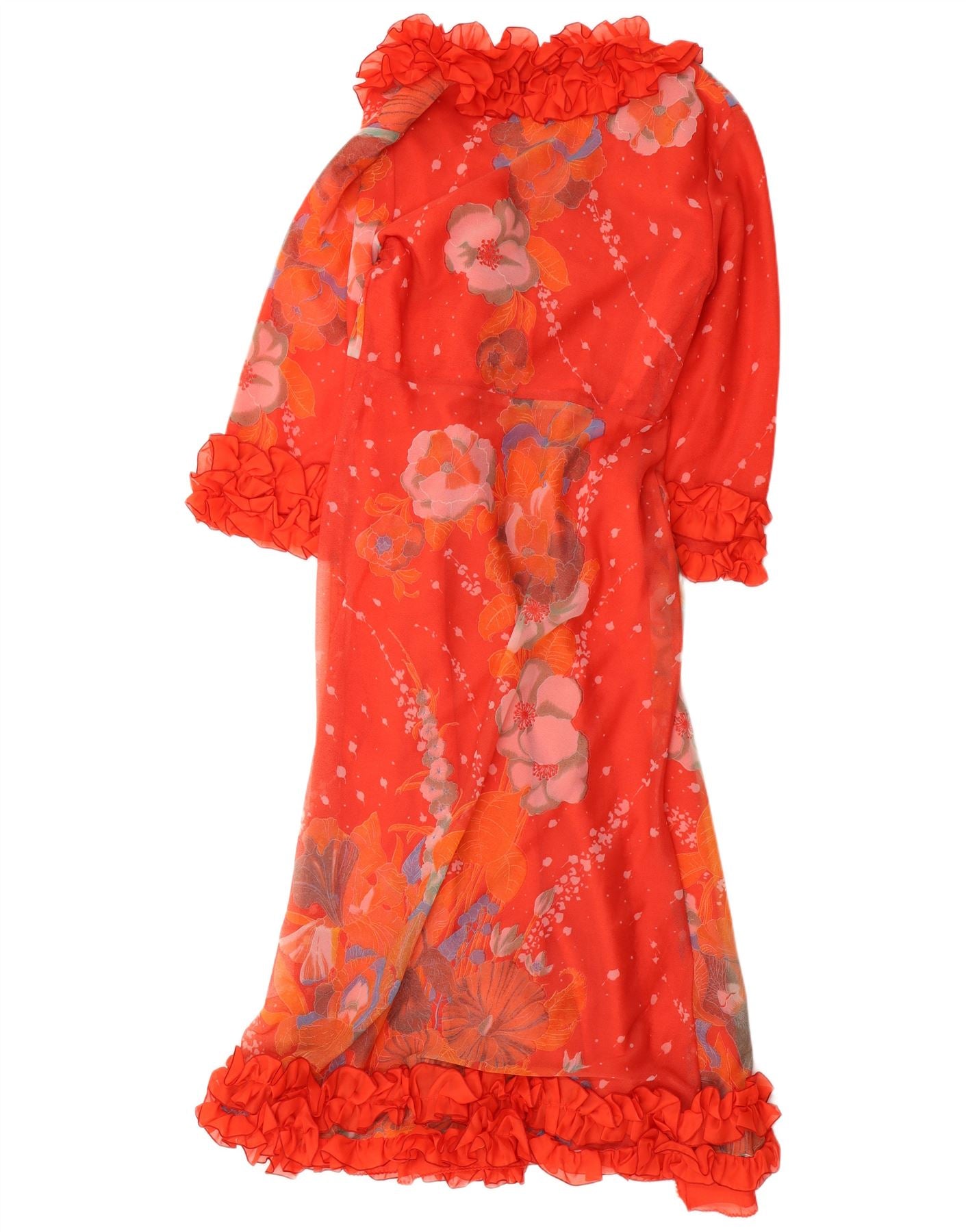 Vestido maxi feminino VINTAGE com babados e roupão uk 12 floral vermelho médio