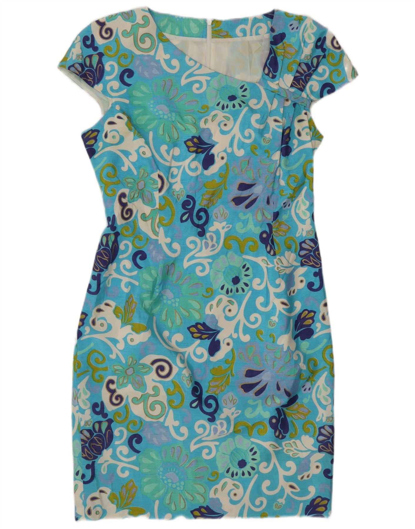 Vestido bainha feminino vintage UK 10 pequeno floral azul