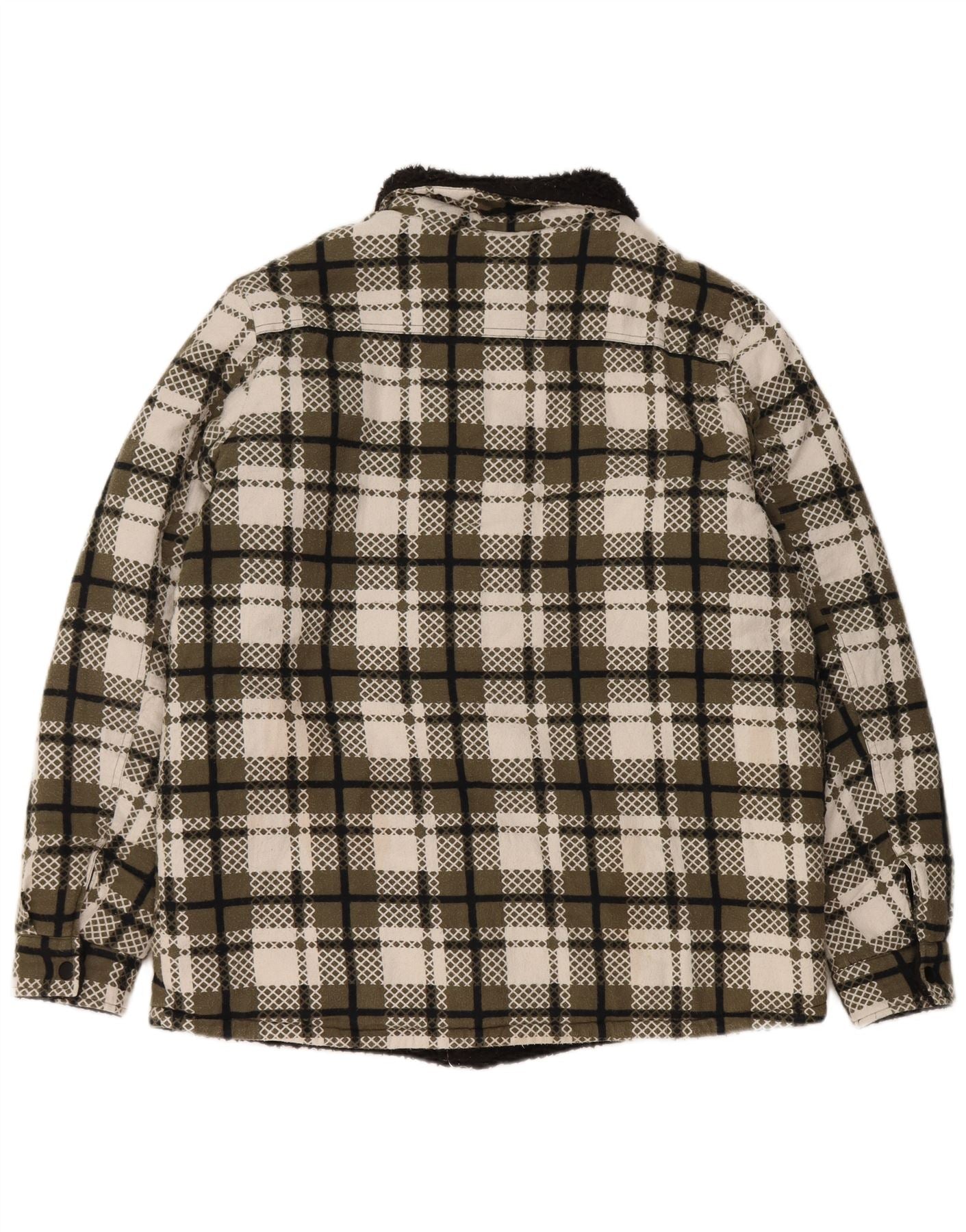 Jaqueta Sherpa feminina VINTAGE UK 16 grande xadrez verde