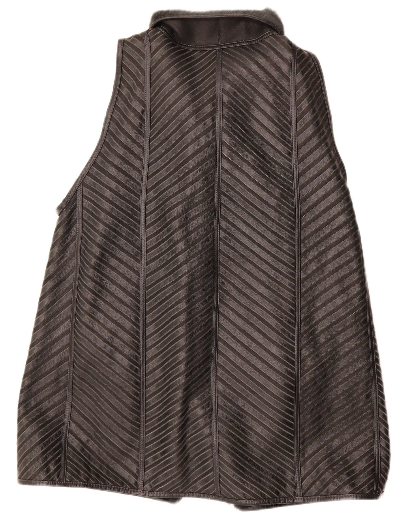 Colete feminino VINTAGE Sherpa Longline EU 40 couro listrado cinza médio