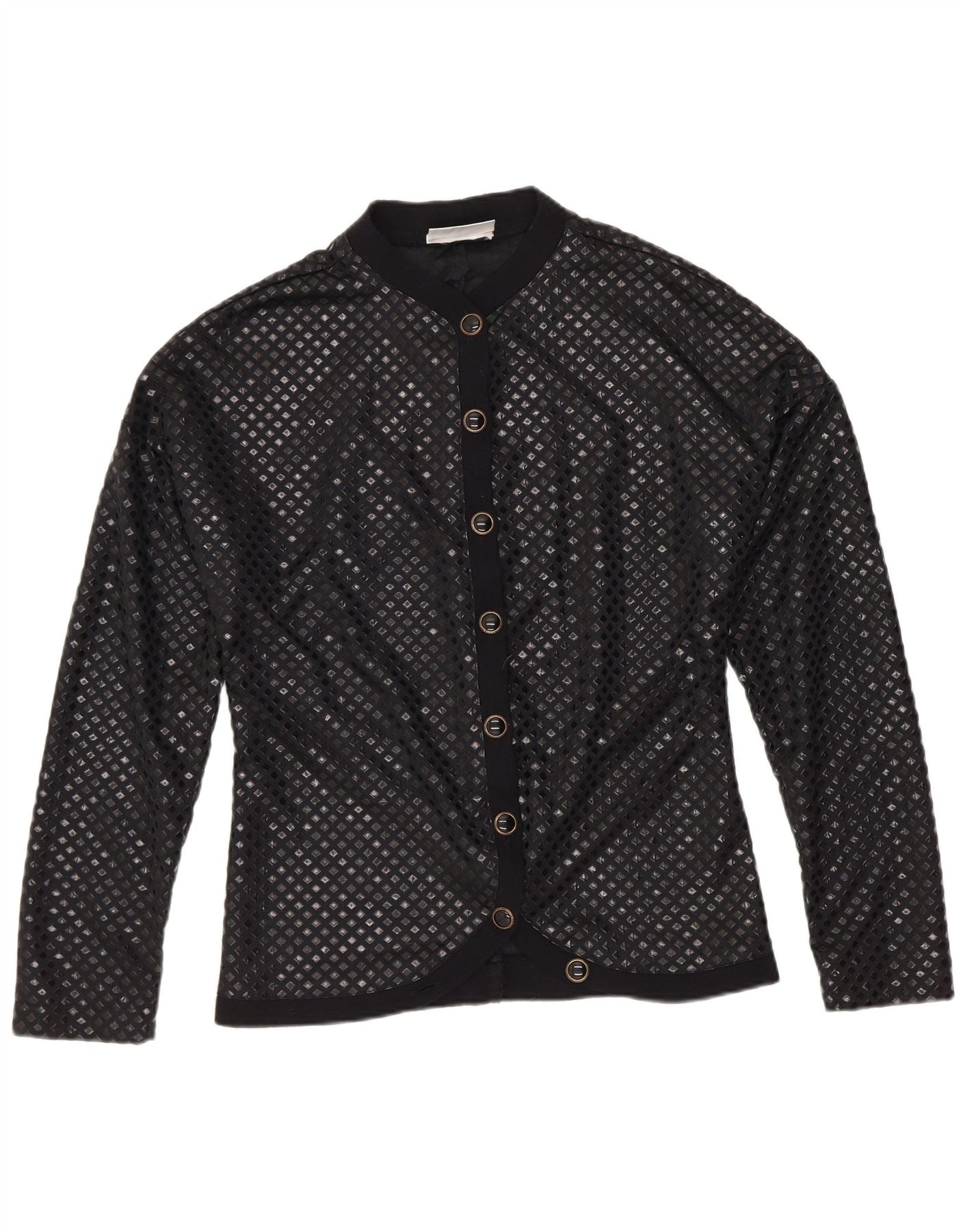 Blusa feminina vintage UK 12 poliamida geométrica preta média