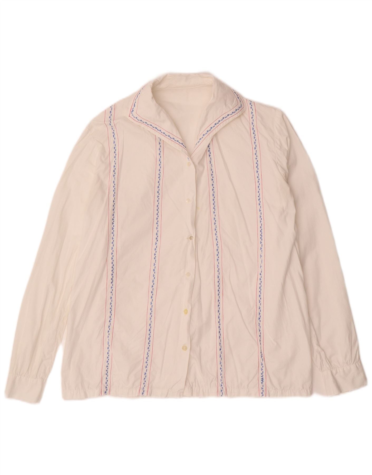 Blusa feminina VINTAGE UK 16 grande listrada branca