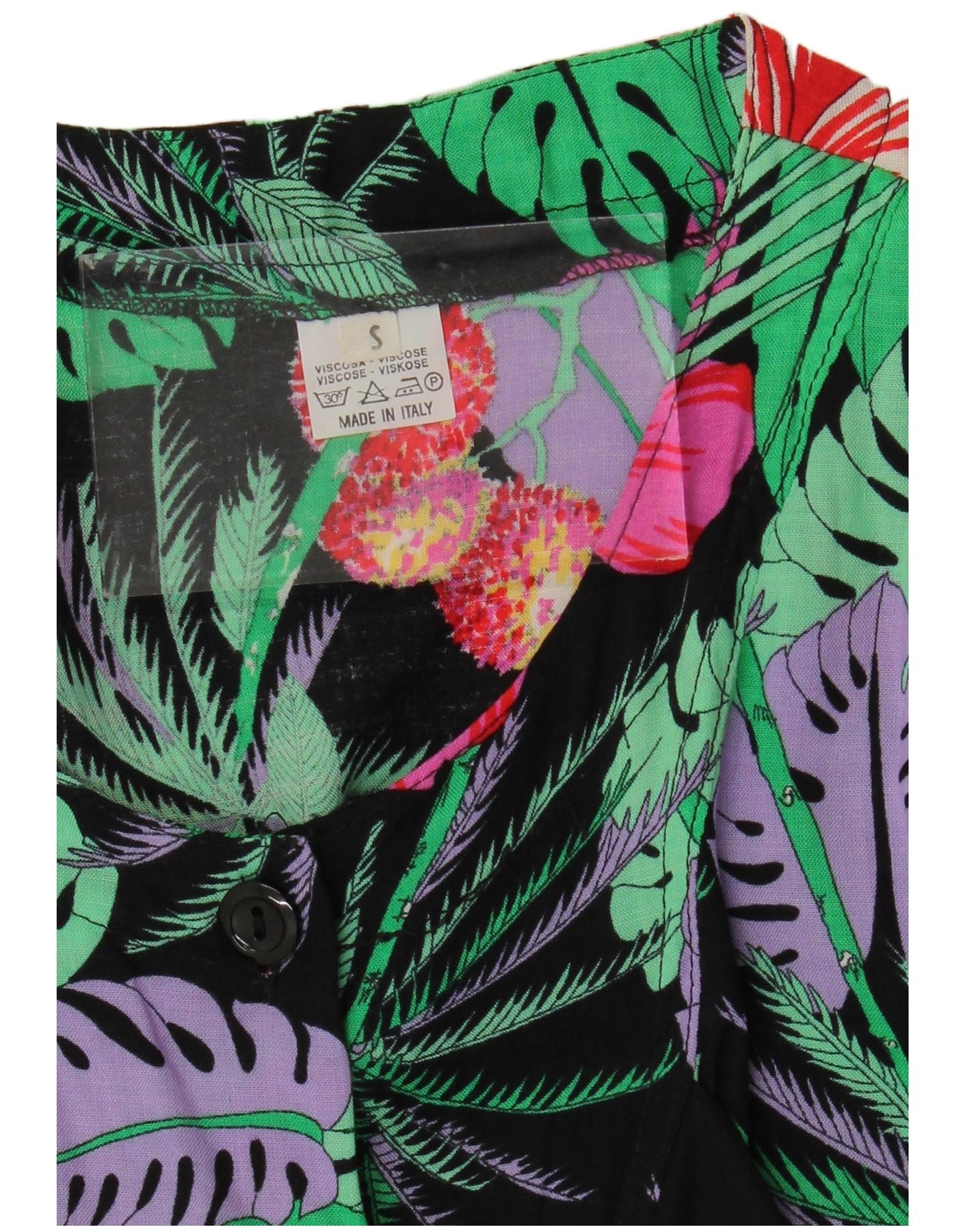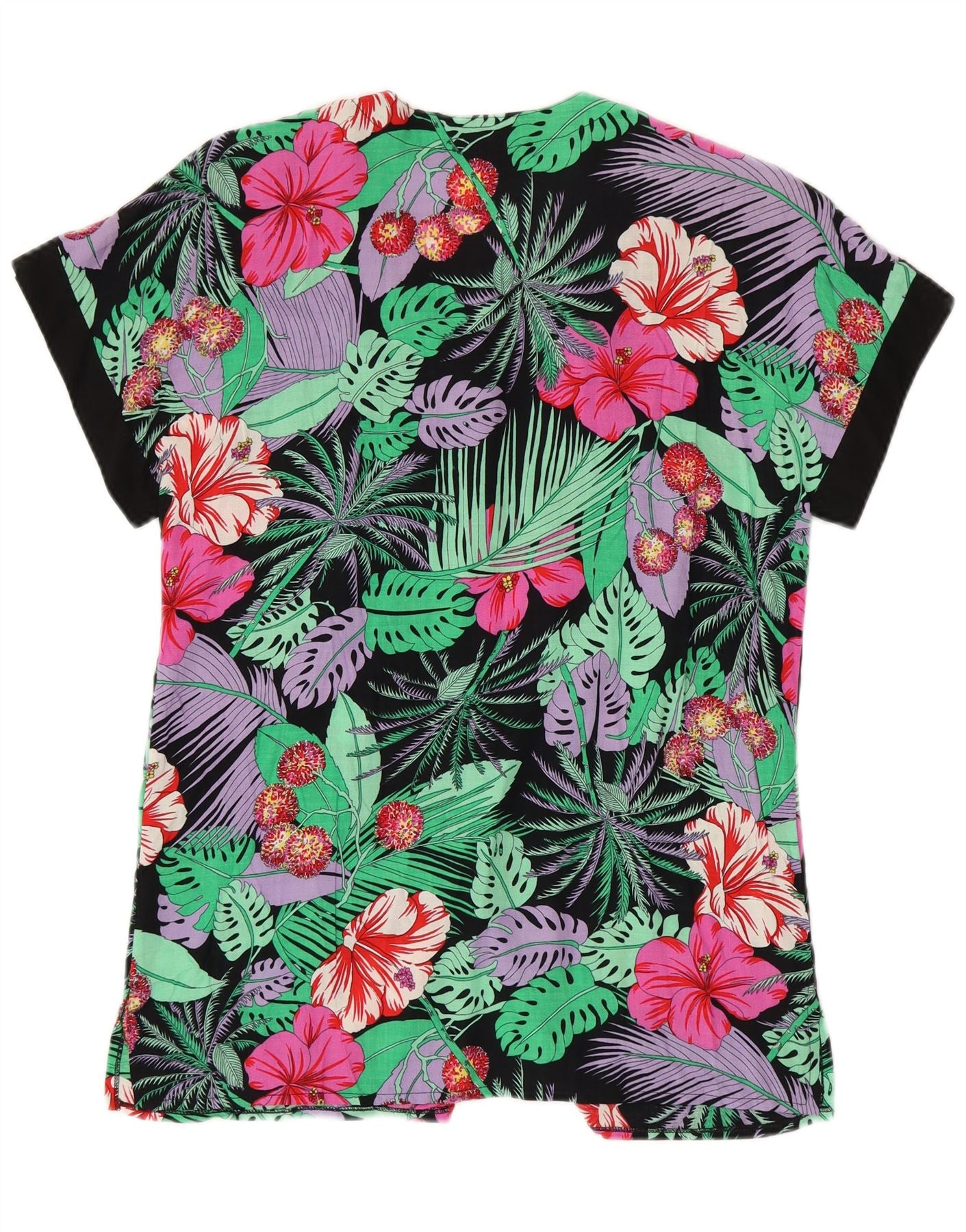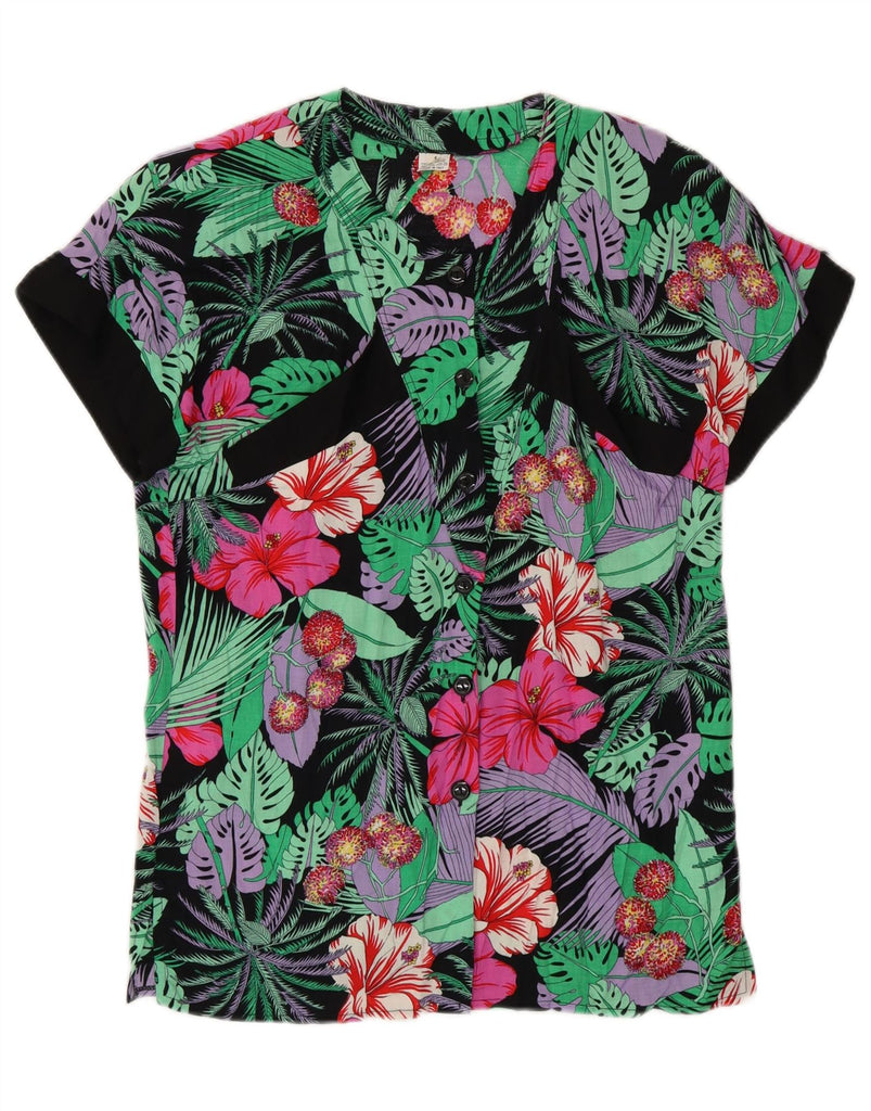 Blusa feminina VINTAGE de manga curta UK 10 pequena floral multicolorida