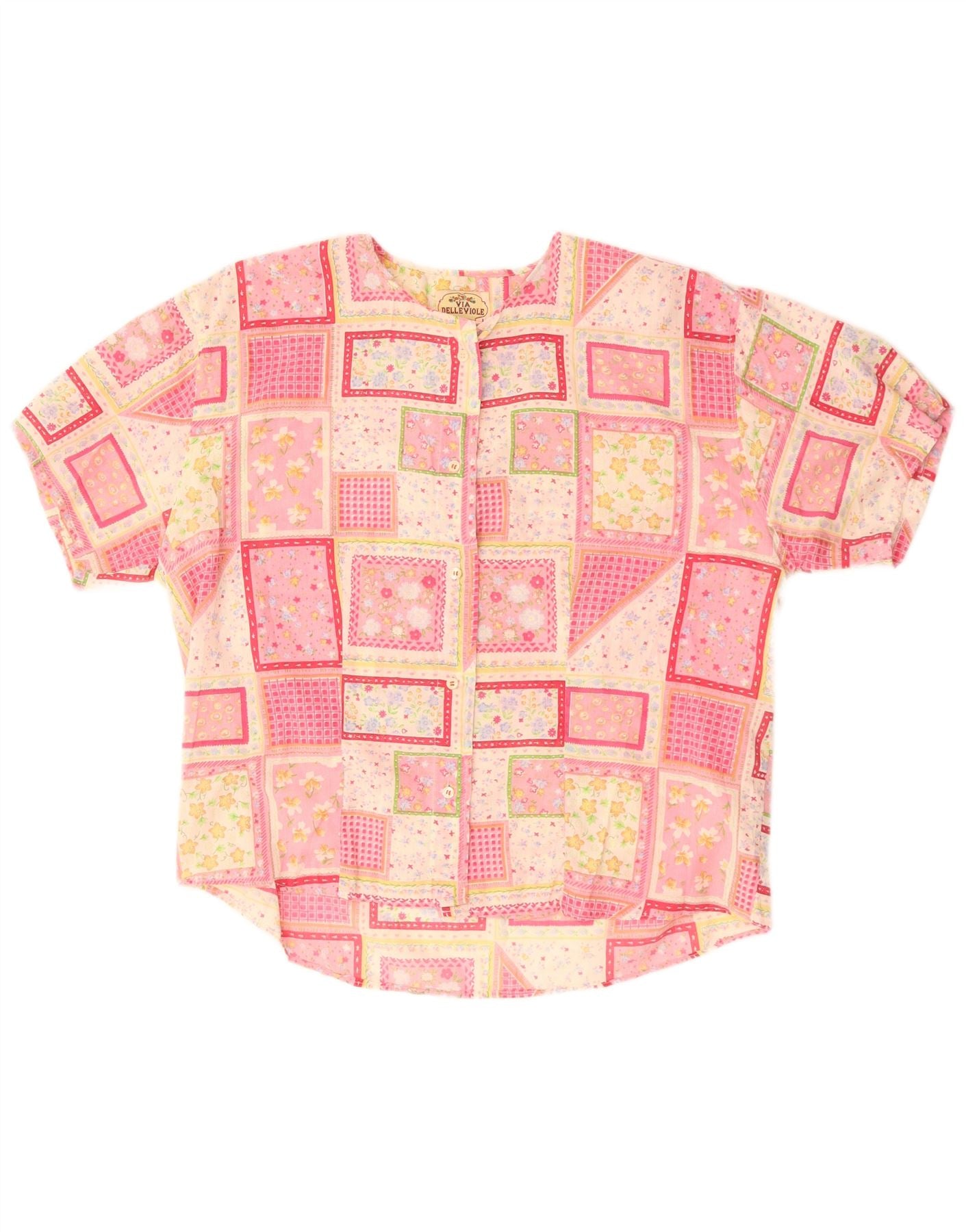 Blusa feminina vintage de manga curta UK 16 patchwork rosa grande