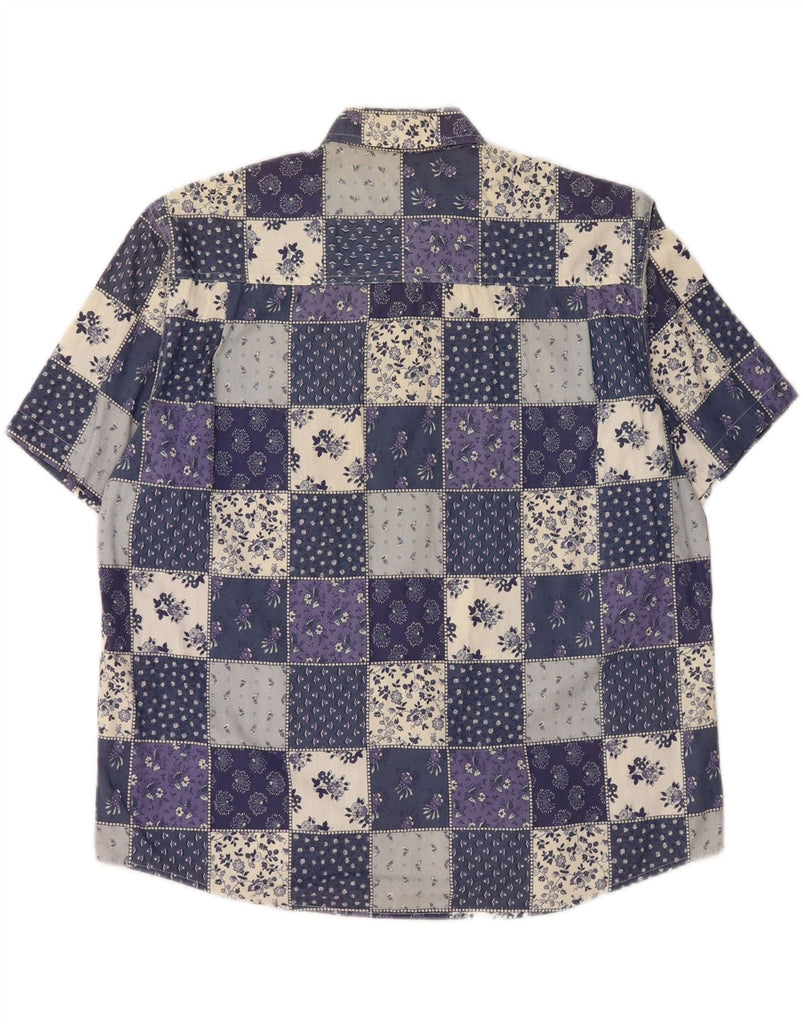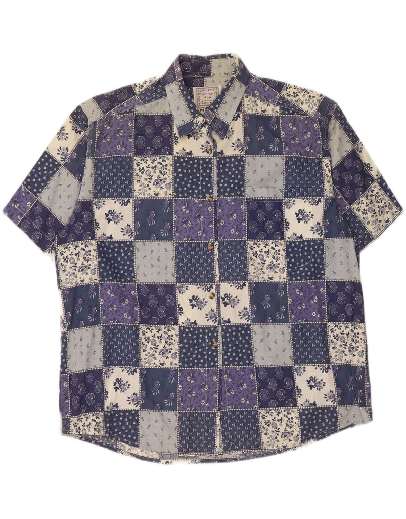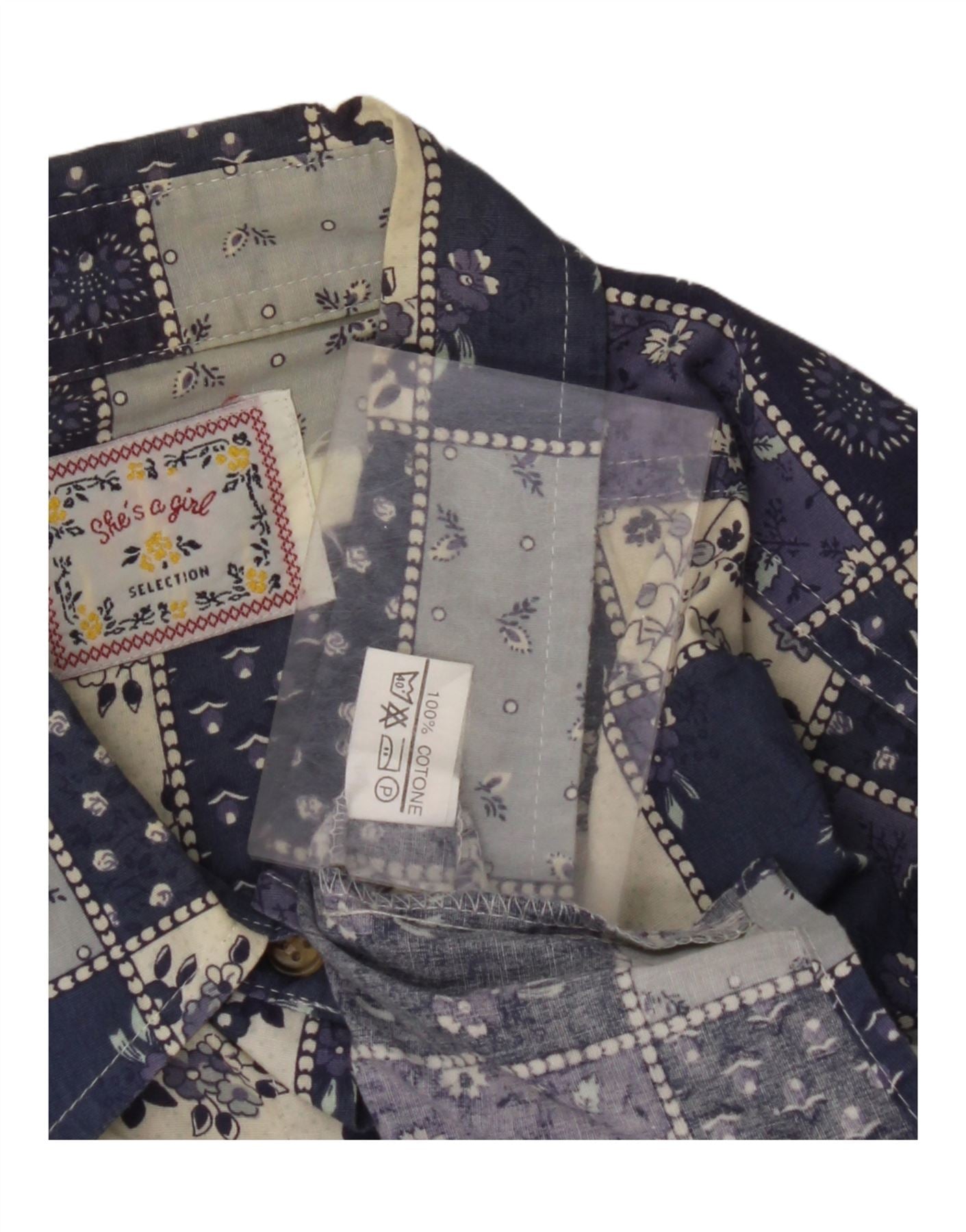 Camisa feminina VINTAGE de manga curta UK 20 2XL azul patchwork algodão