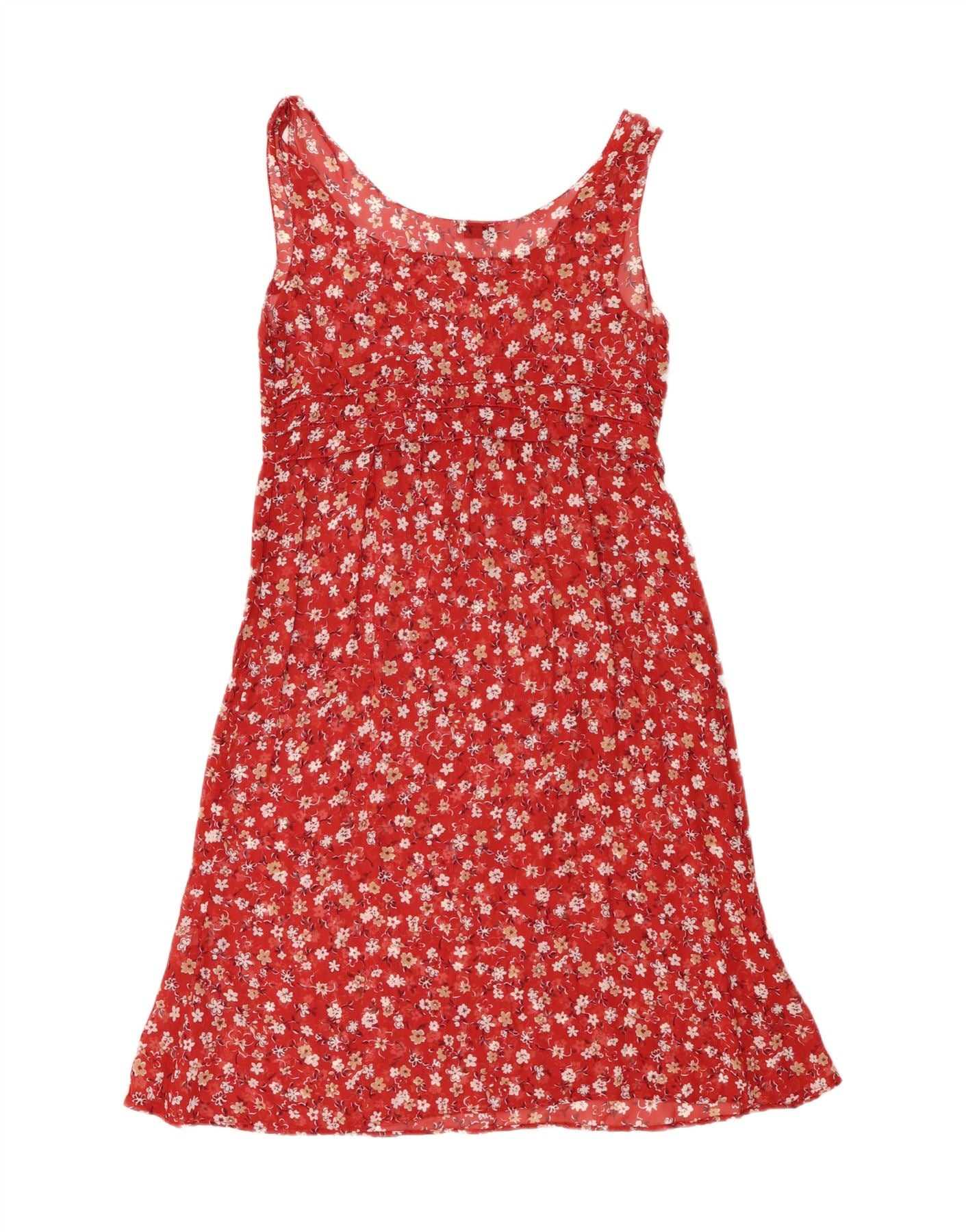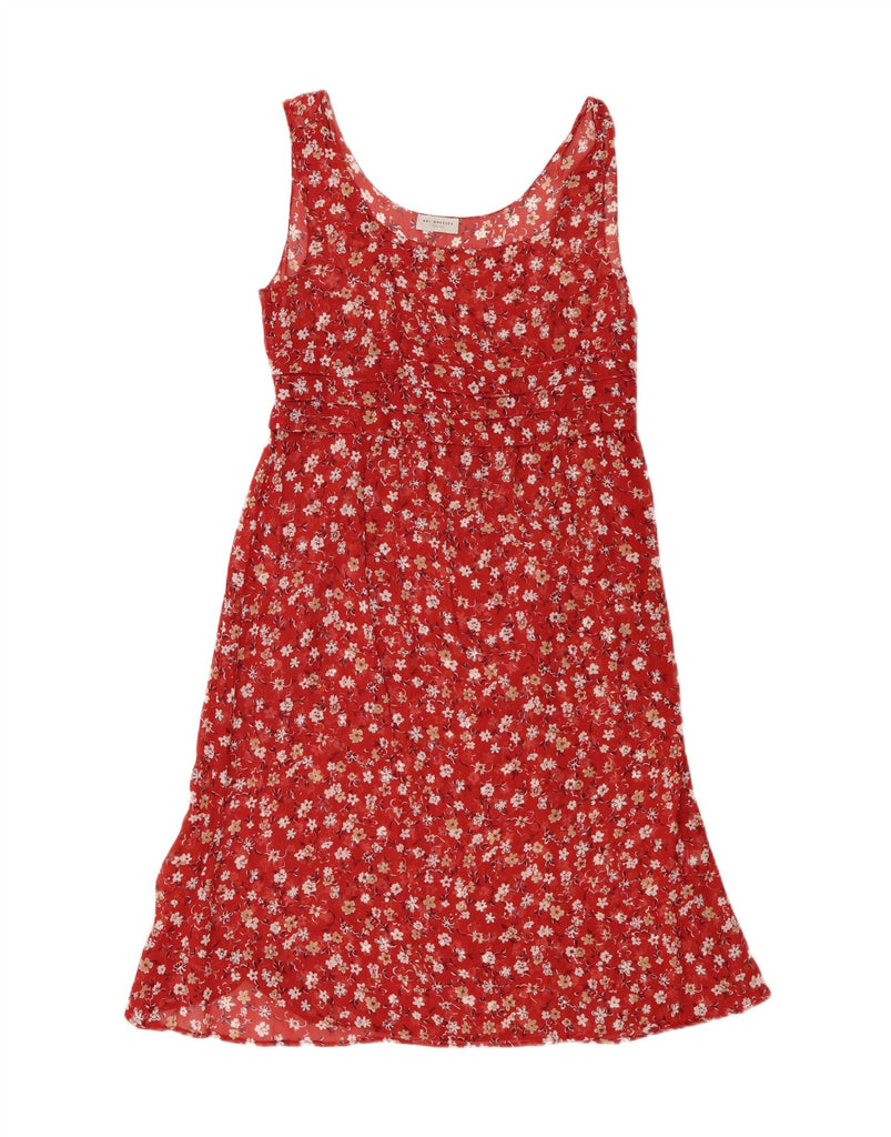 VINTAGE Womens Sleeveless A-Line Dress IT 40 Small Red Floral Viscose