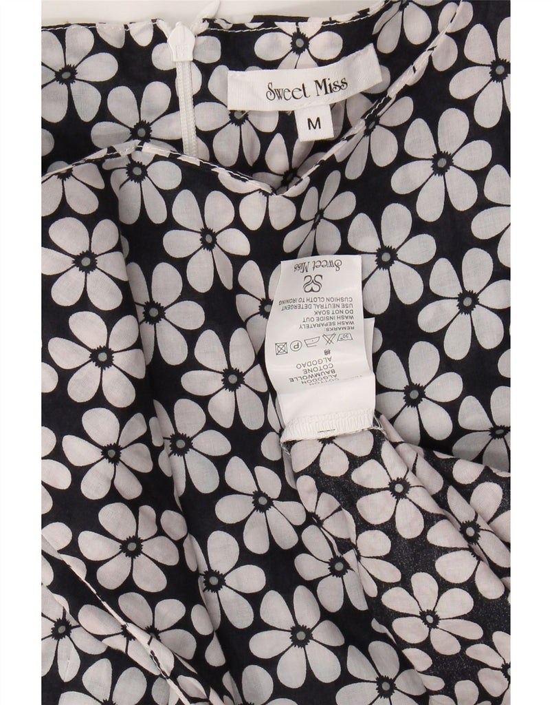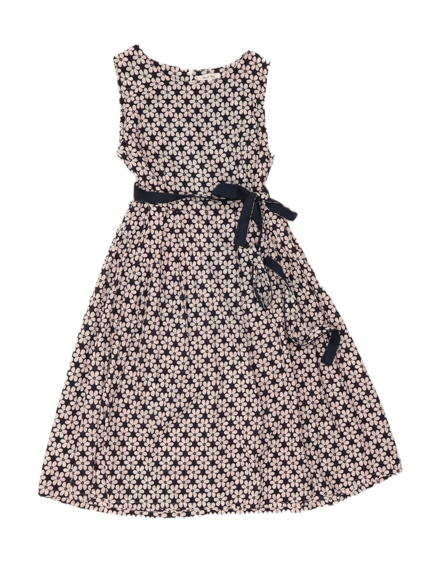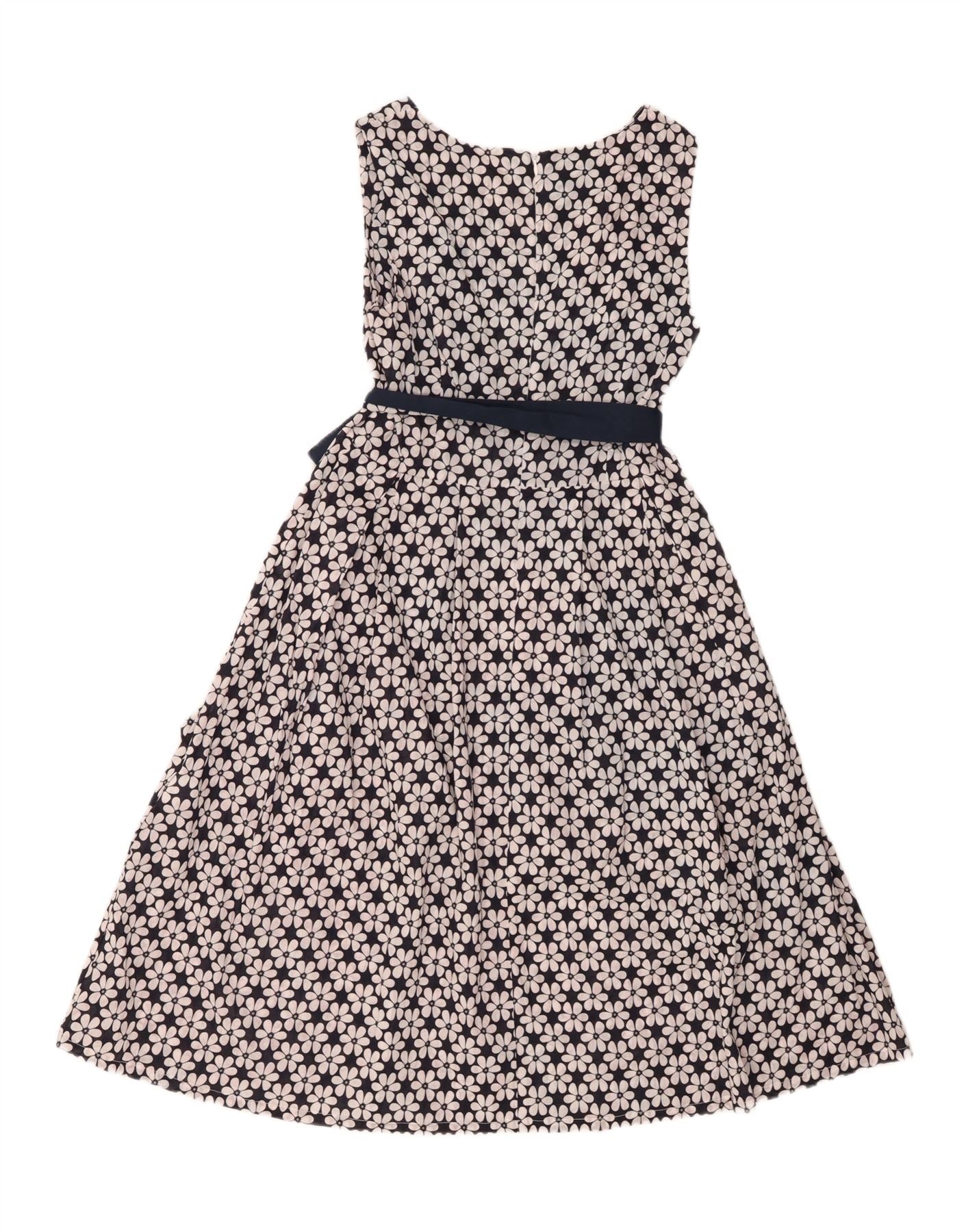 VINTAGE Womens Sleeveless A-Line Dress UK 12 Medium Navy Blue Floral