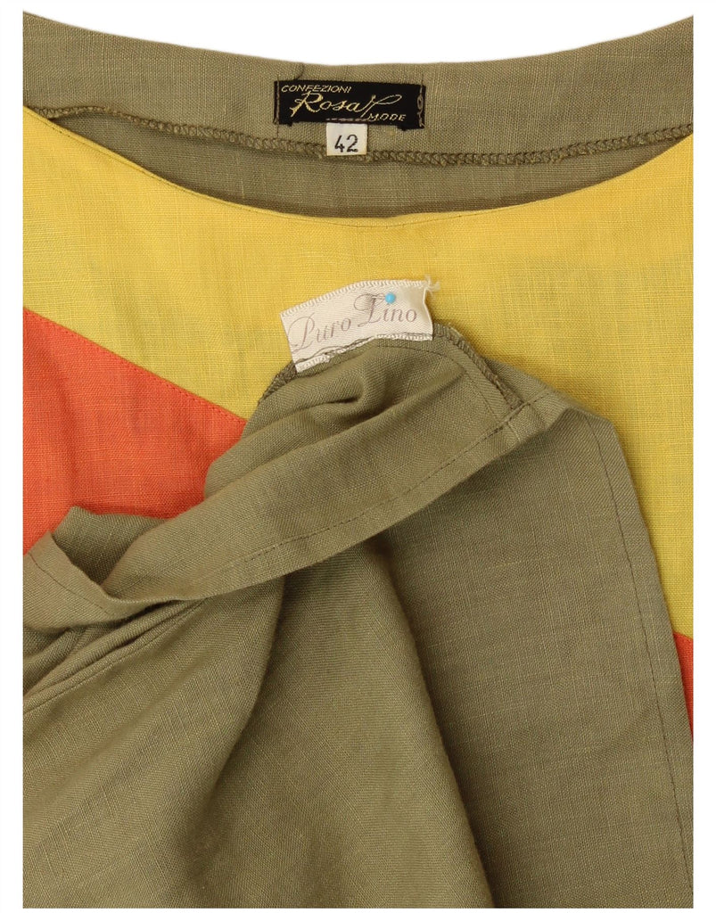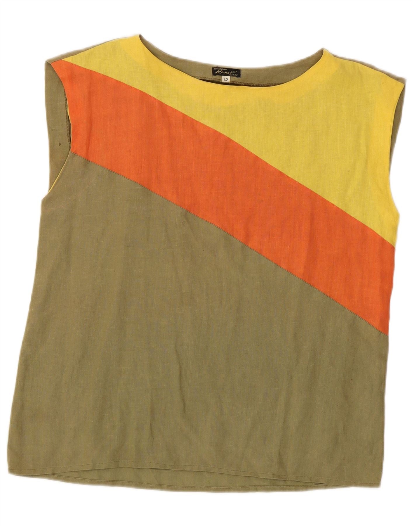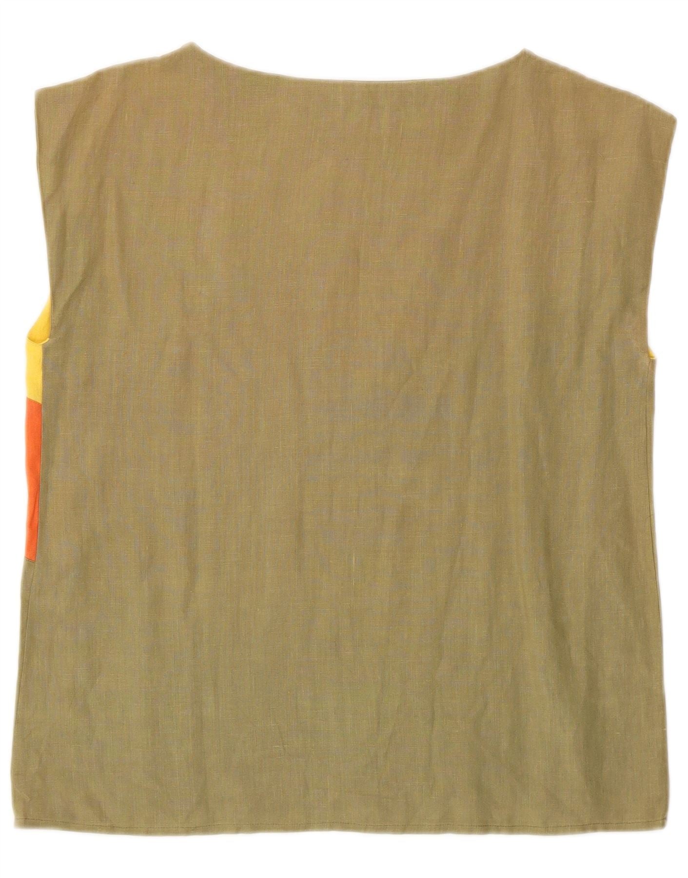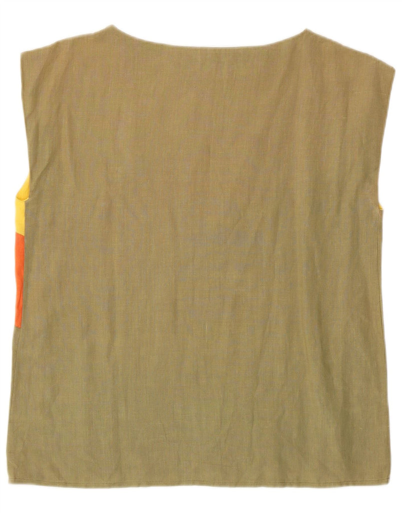 VINTAGE Womens Sleeveless Blouse Top IT 42 Medium Khaki Colourblock Linen