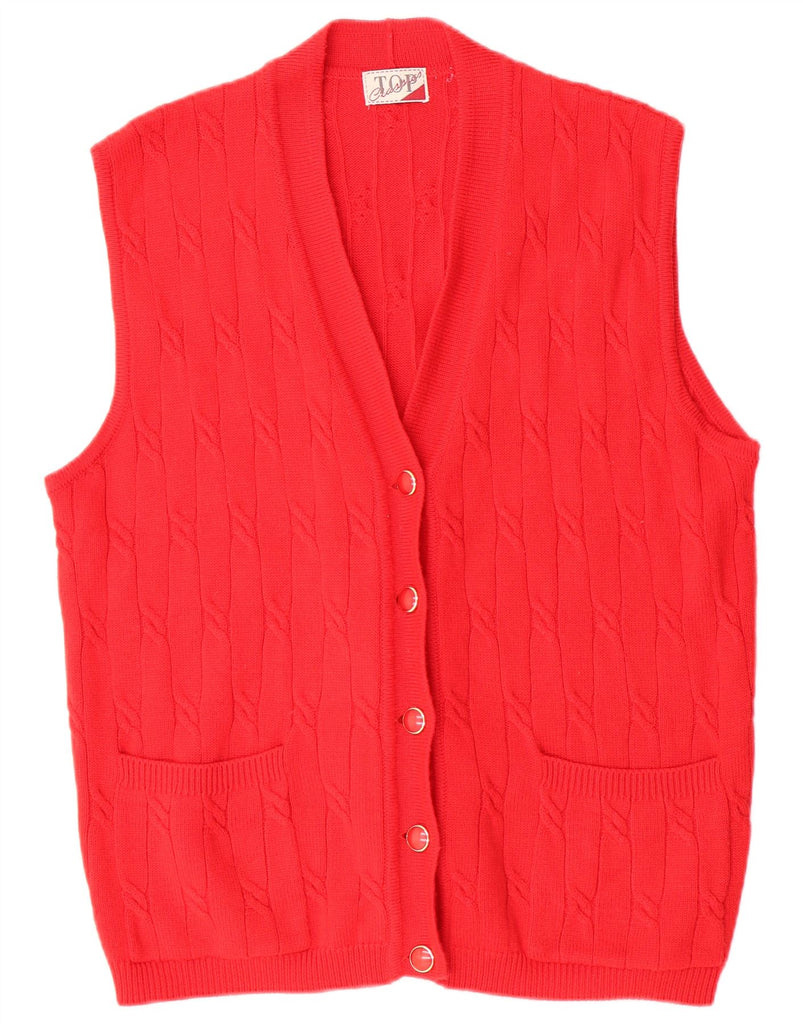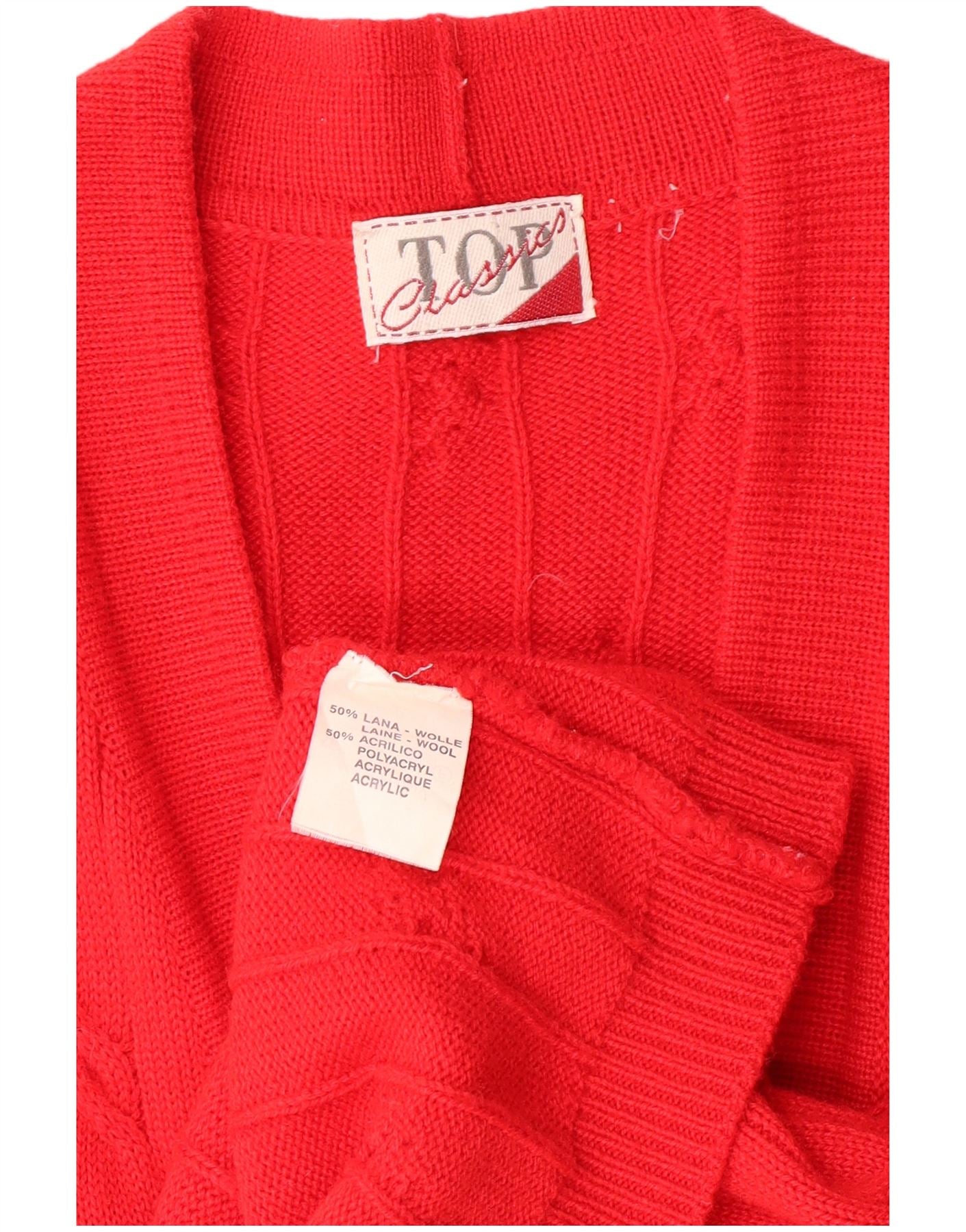 Suéter cardigã feminino sem mangas VINTAGE Reino Unido 18 XL lã vermelha