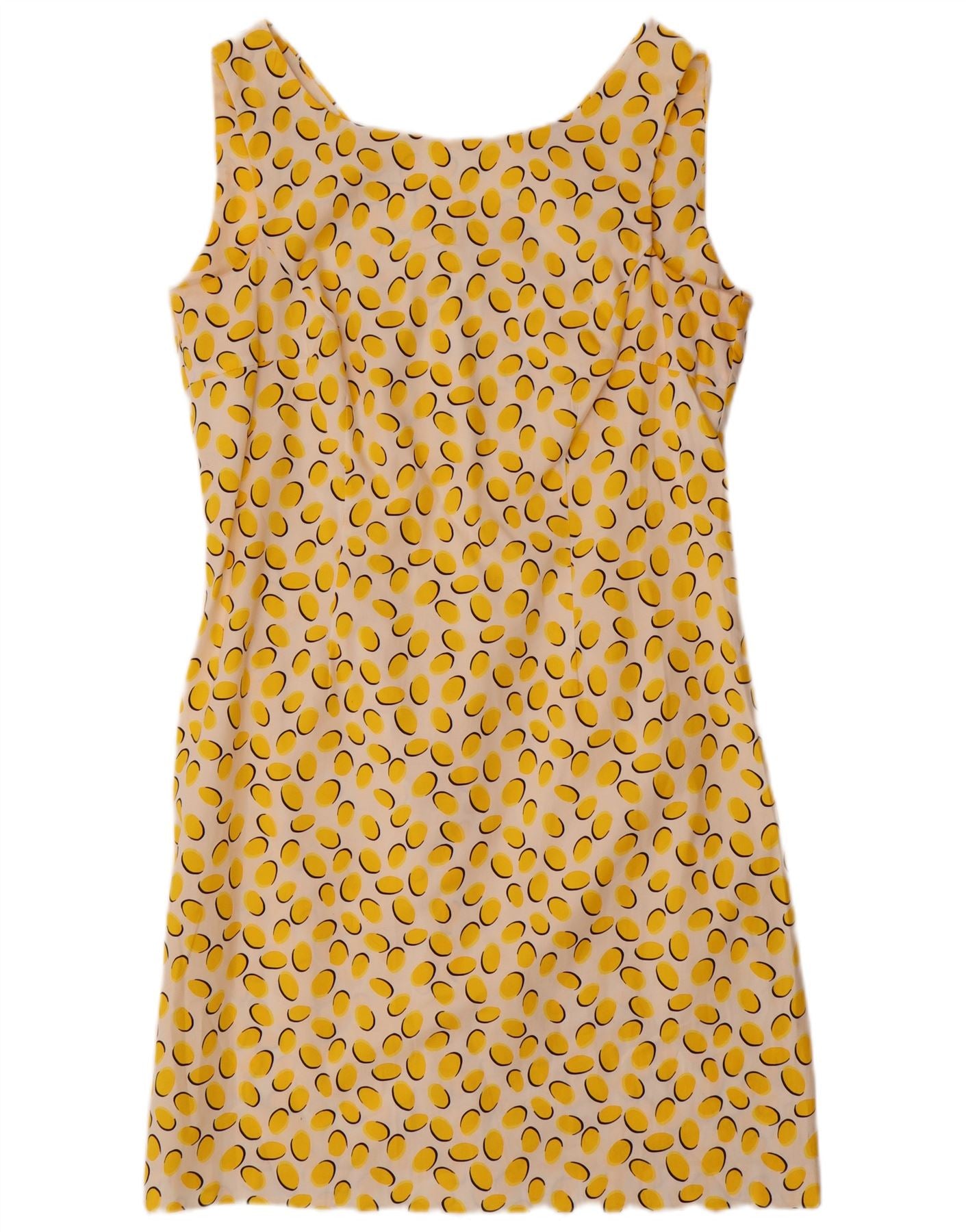 Vestido feminino VINTAGE sem mangas com bainha UK 20 2XL algodão manchado amarelo