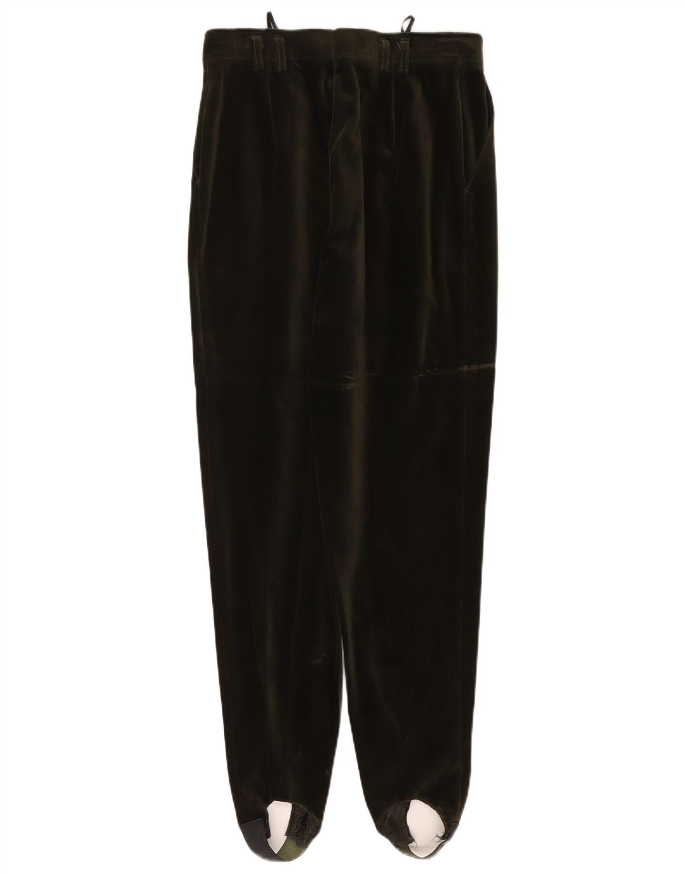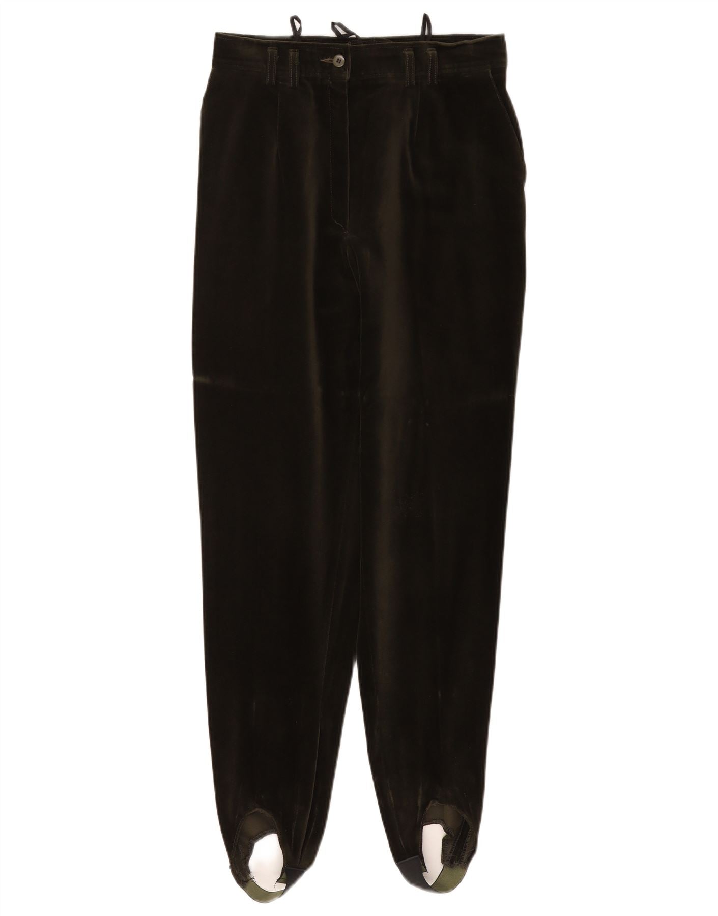 Calça feminina VINTAGE de veludo com estribo UE 40 médio W27 L29 algodão verde