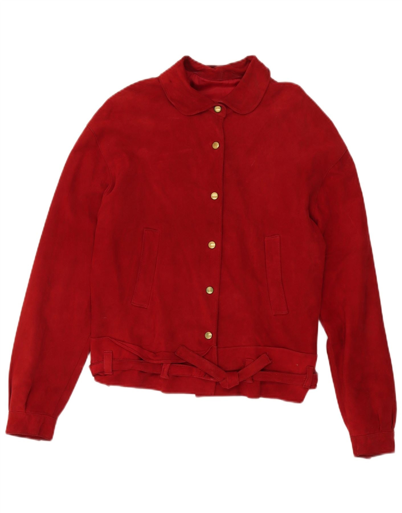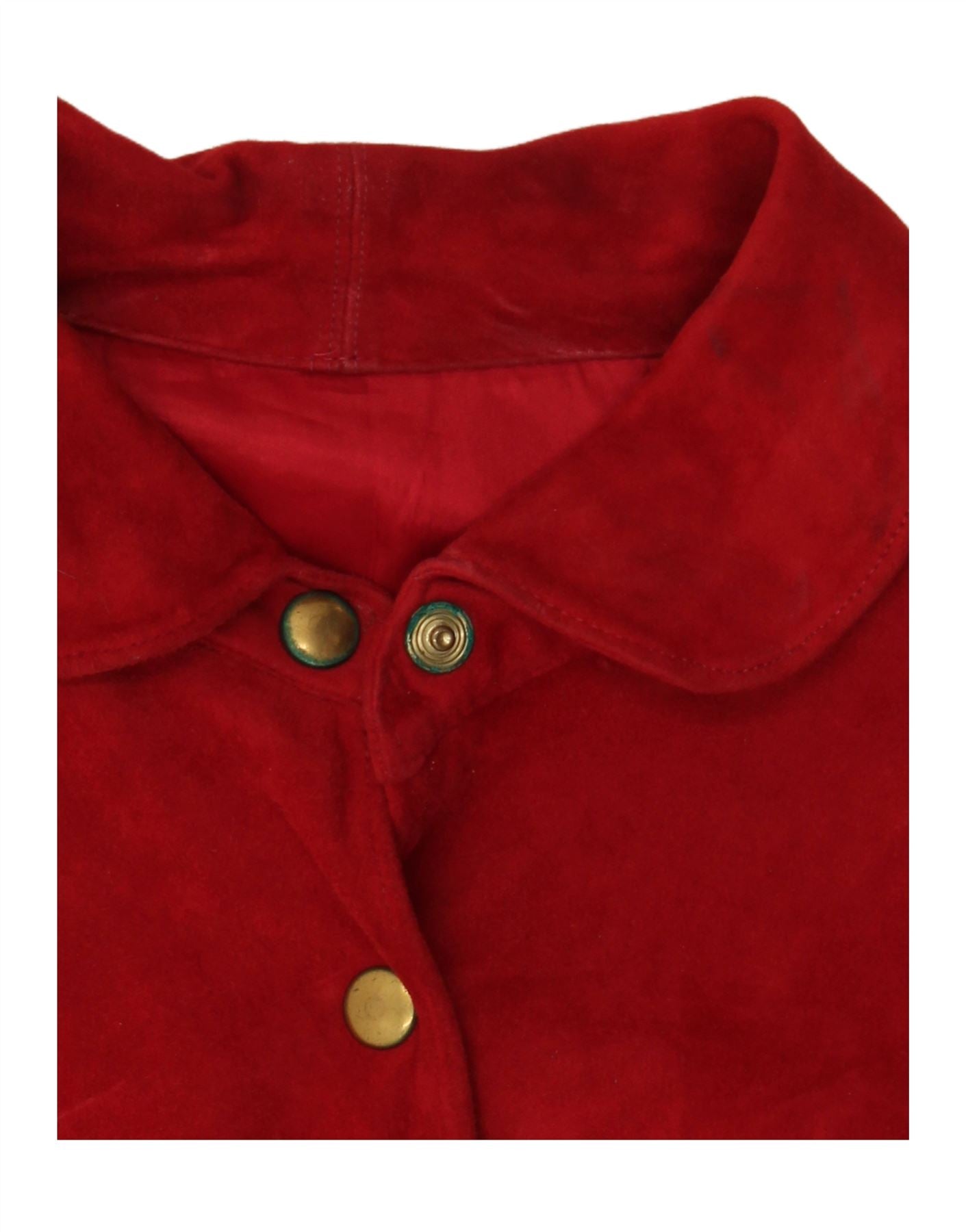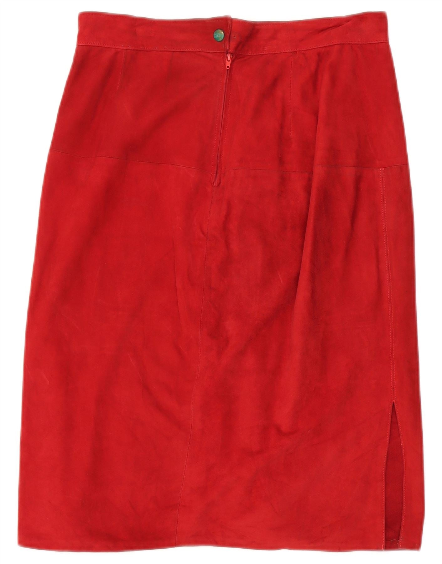 Conjunto de saia feminina de camurça VINTAGE de 2 peças Reino Unido 14 médio W30 couro vermelho