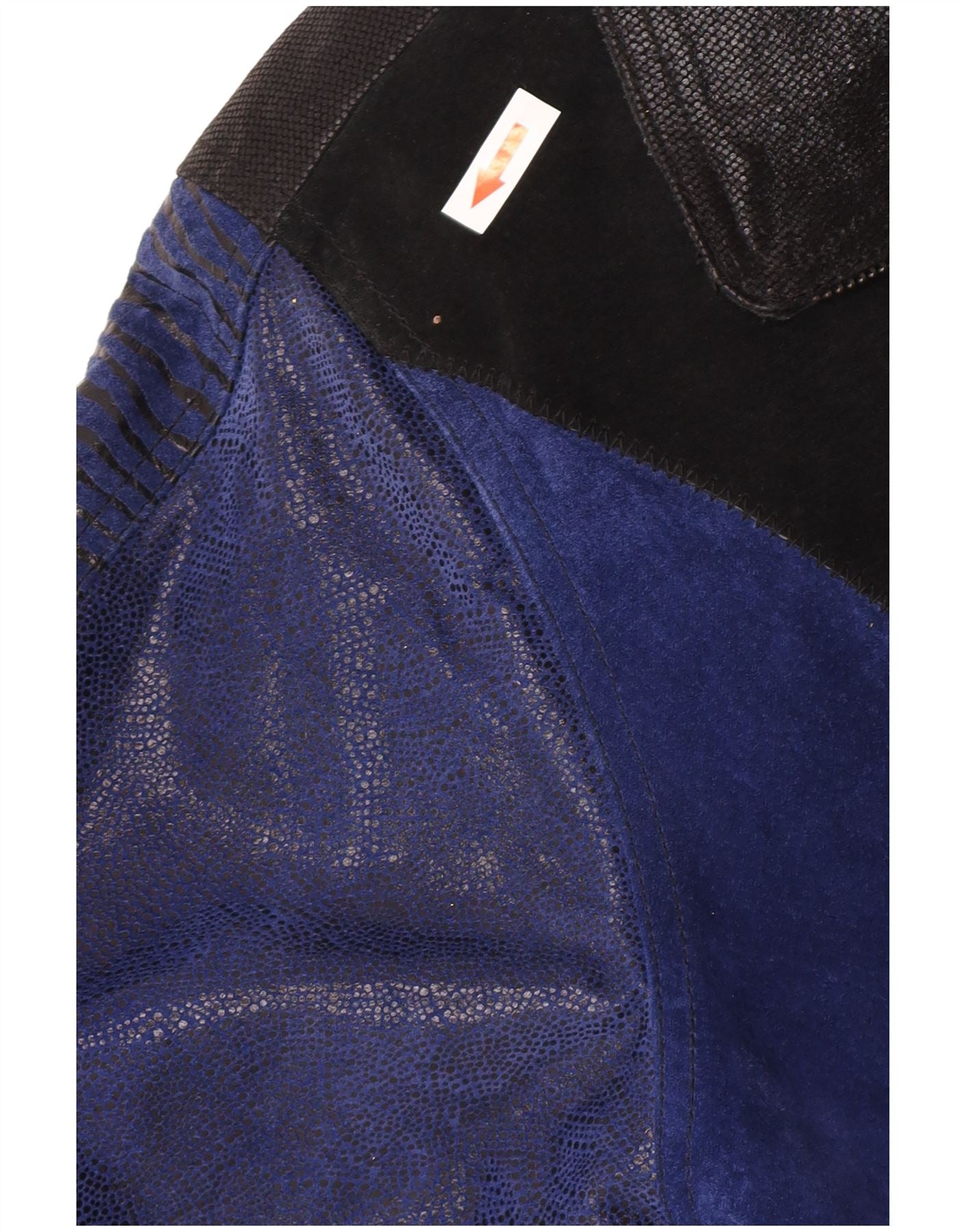 Sobretudo de camurça vintage feminino UK 12 couro colorblock azul médio