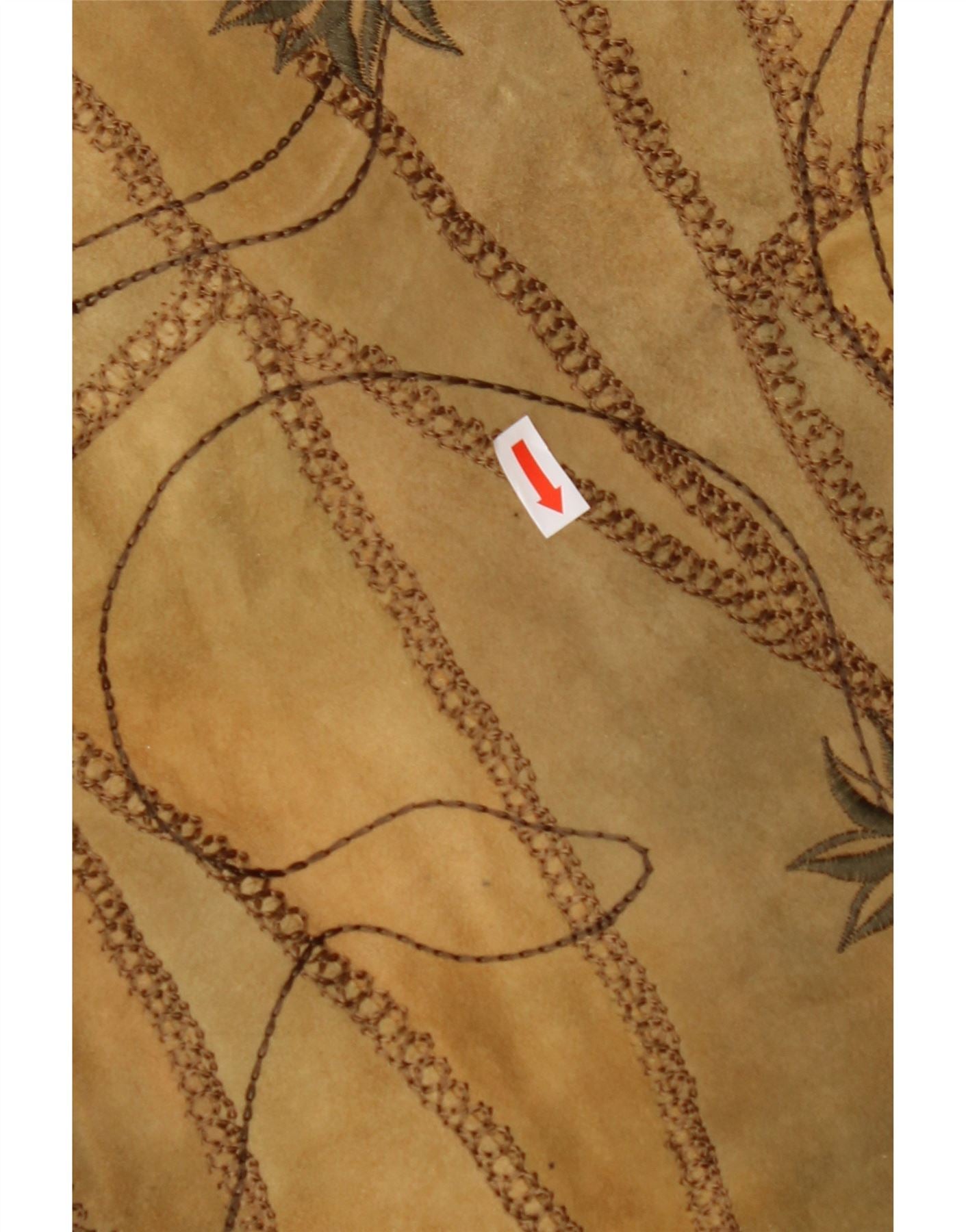 Colete feminino de camurça VINTAGE EU 38 couro floral marrom médio