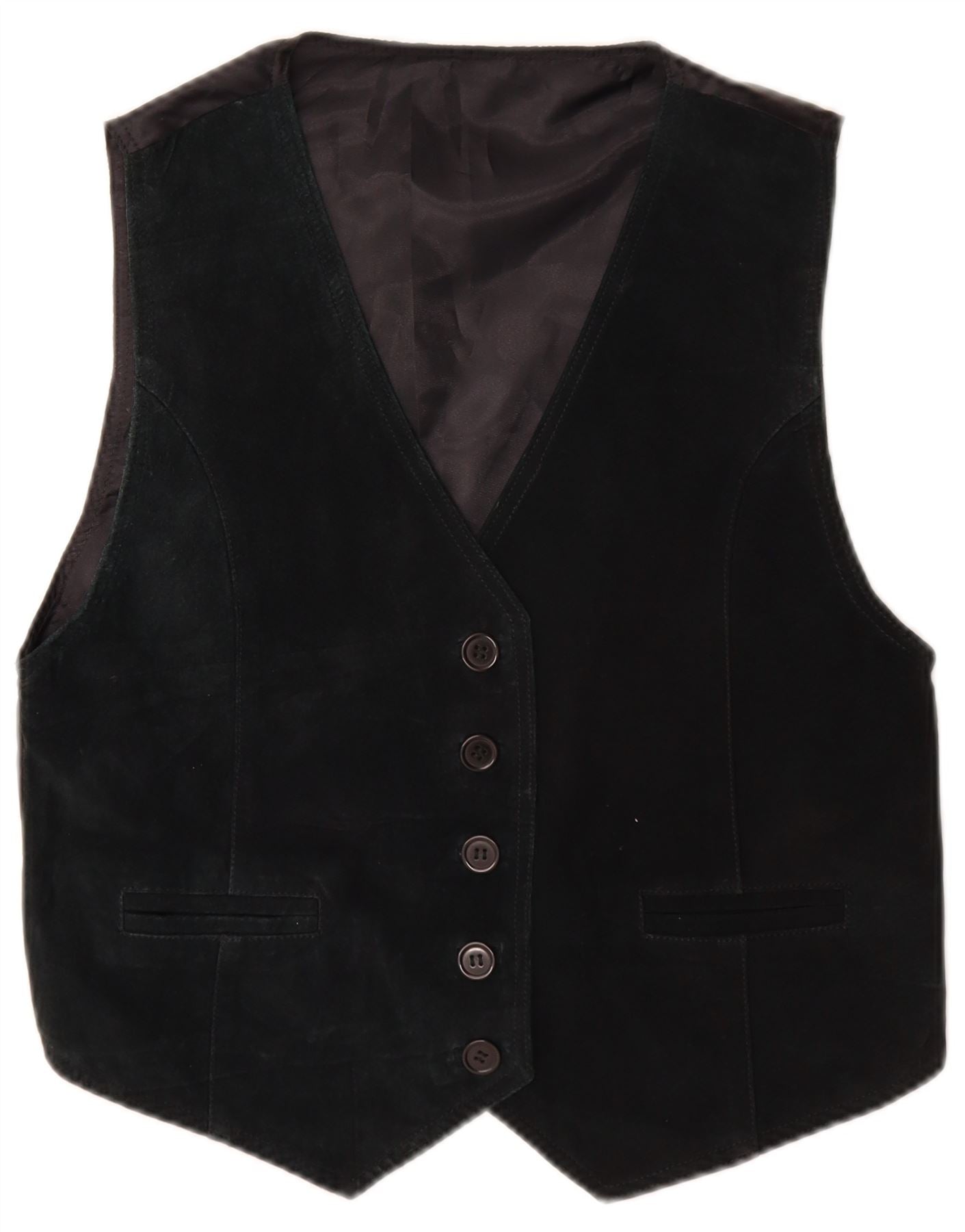 Colete de camurça vintage feminino Reino Unido 10 pequeno couro preto