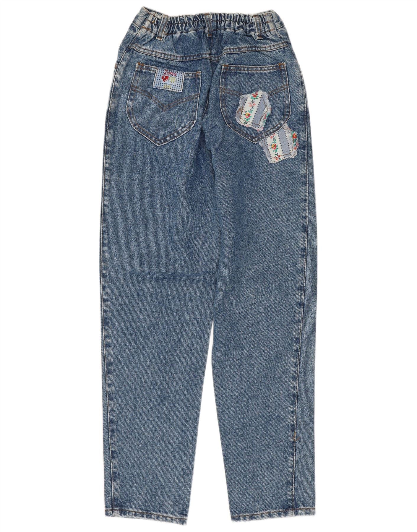 Jeans cônicos femininos VINTAGE EU 40 médio W28 L28 azul floral algodão