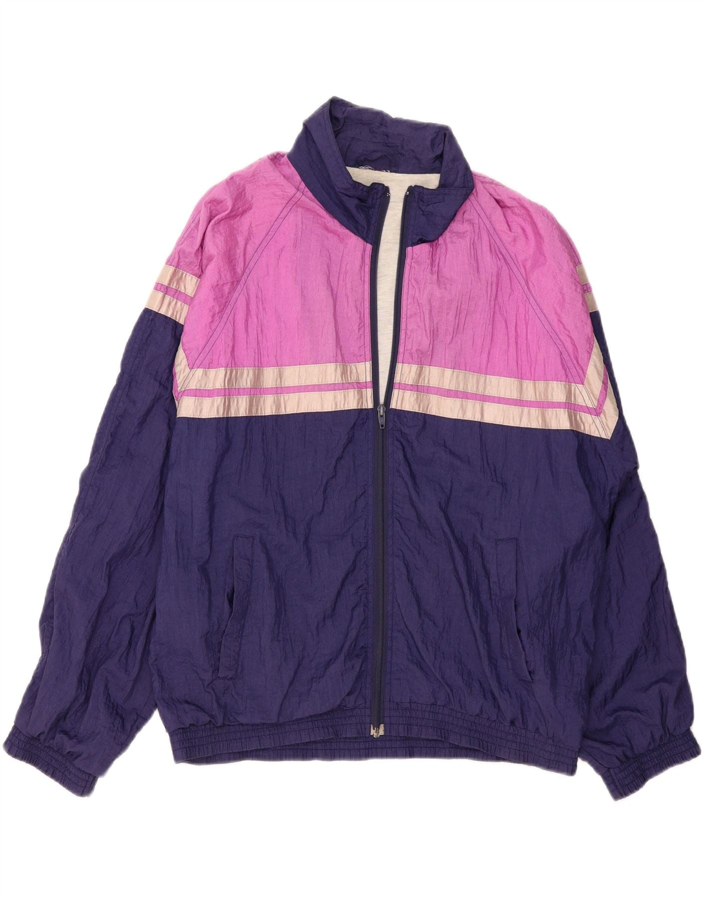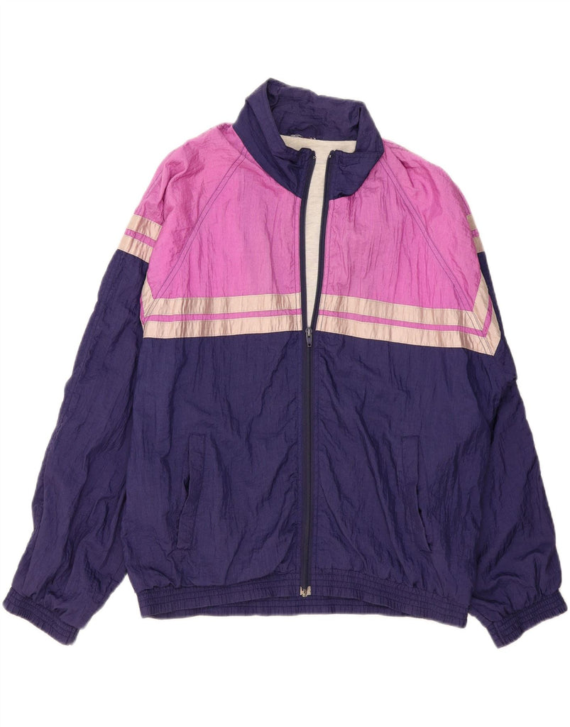 VINTAGE Womens Tracksuit Top Jacket UK 20 2XL Navy Blue Colourblock