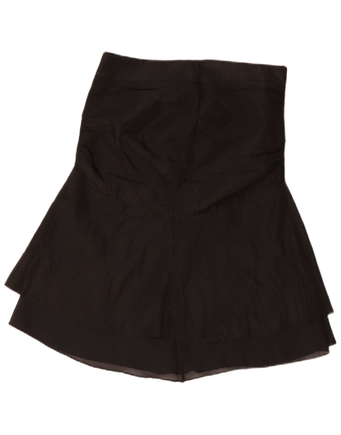 - Descrição da IA: Esta minissaia feminina vintage é confeccionada em tecido preto. Possui cintura alta e caimento descontraído, garantindo conforto e uma silhueta lisonjeira. O design incorpora uma construção plissada e em camadas, criando uma forma distinta e volumosa. Um discreto fecho de correr na parte de trás proporciona um acabamento elegante. Esta saia oferece uma adição elegante e versátil a qualquer guarda-roupa.