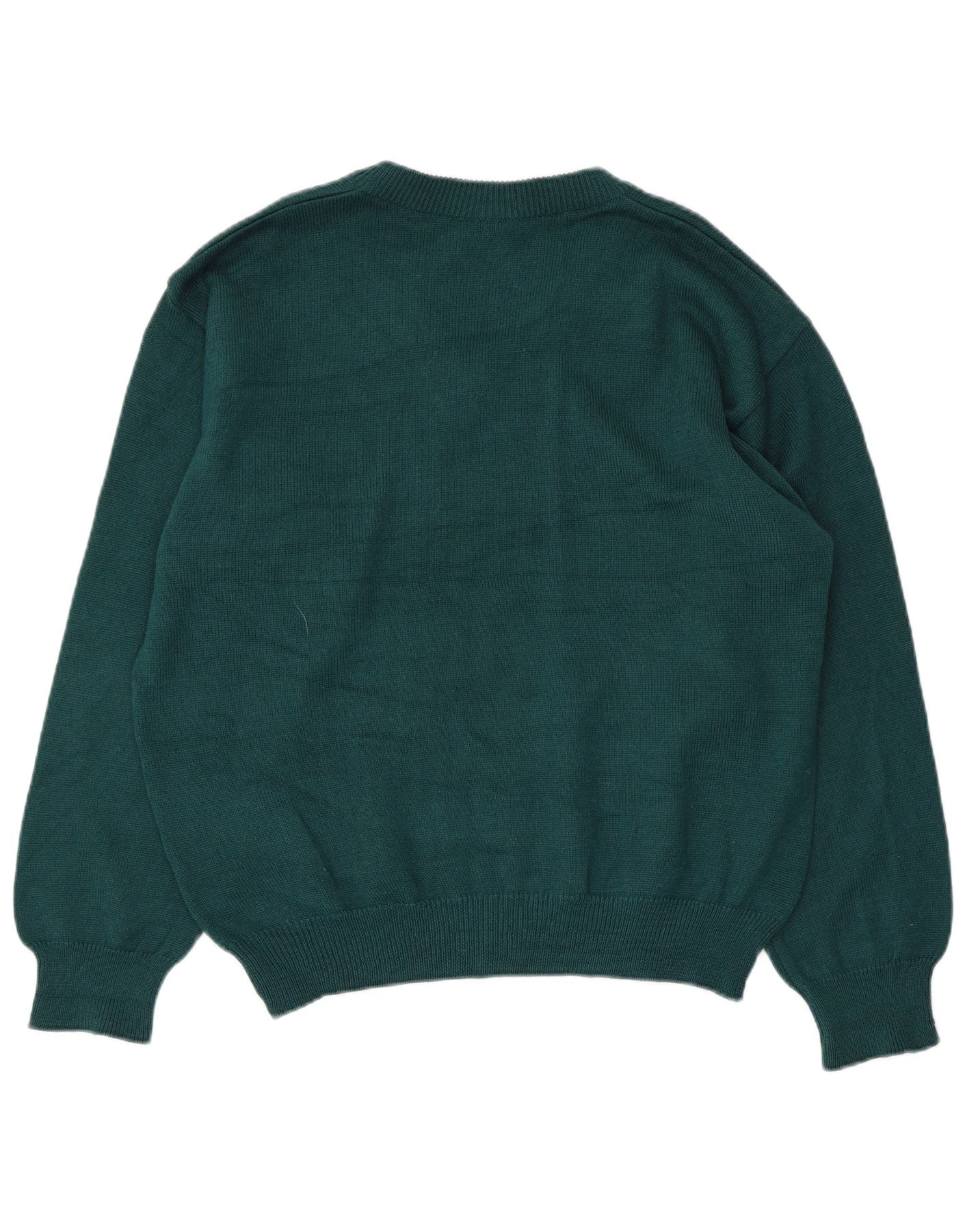 Suéter feminino vintage com decote em V IT 50 XL verde Argyle/lã diamante
