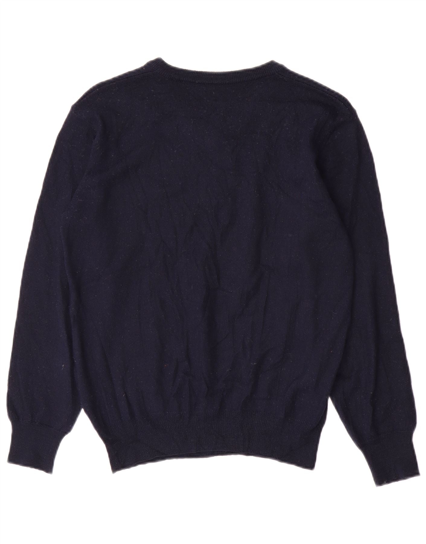 Suéter feminino vintage com decote em V UK 14 Médio Azul Marinho Argyle/Diamante