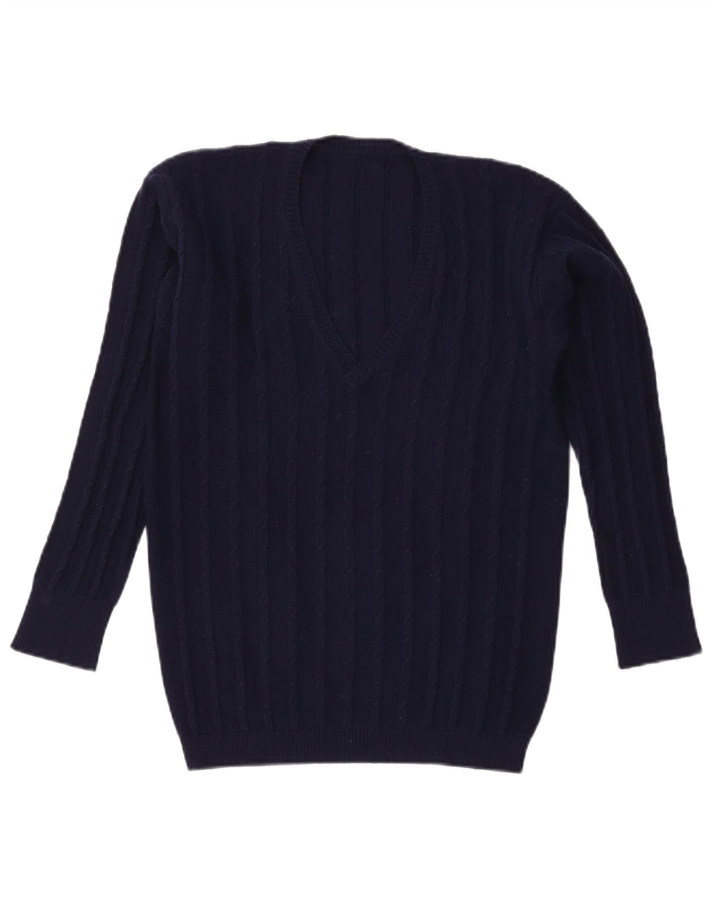 Suéter feminino VINTAGE com decote em V Reino Unido 16 grande azul marinho