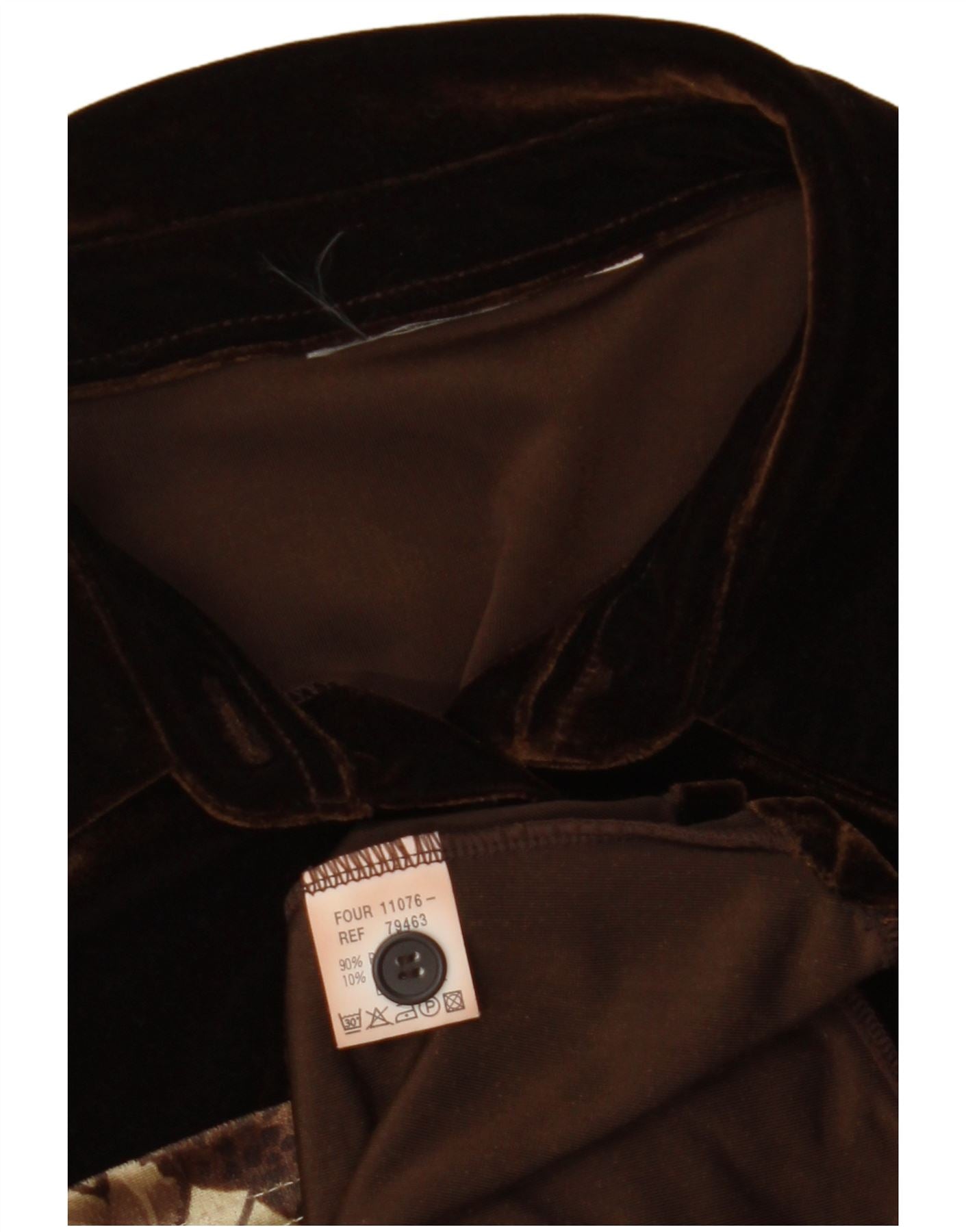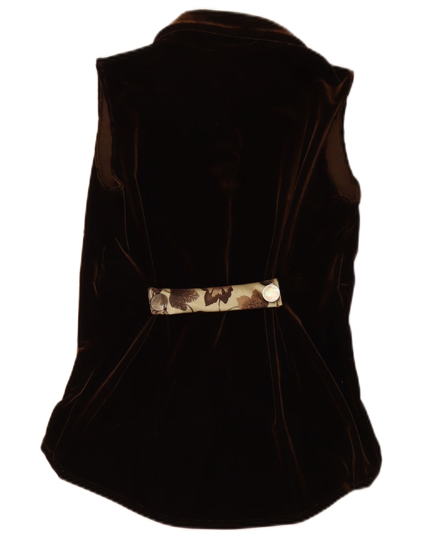Blusa feminina VINTAGE de veludo sem mangas Reino Unido 12 marrom médio floral