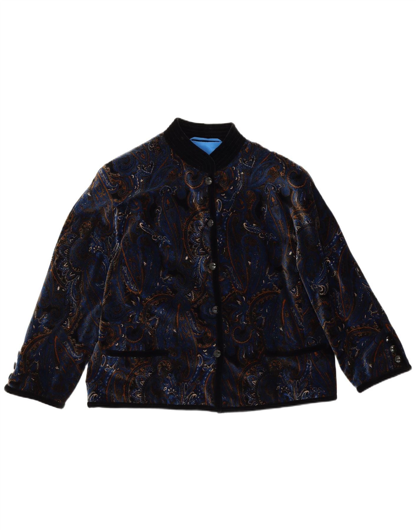 Jaqueta blazer feminina VINTAGE de veludo com 5 botões Reino Unido 14 grande azul paisley