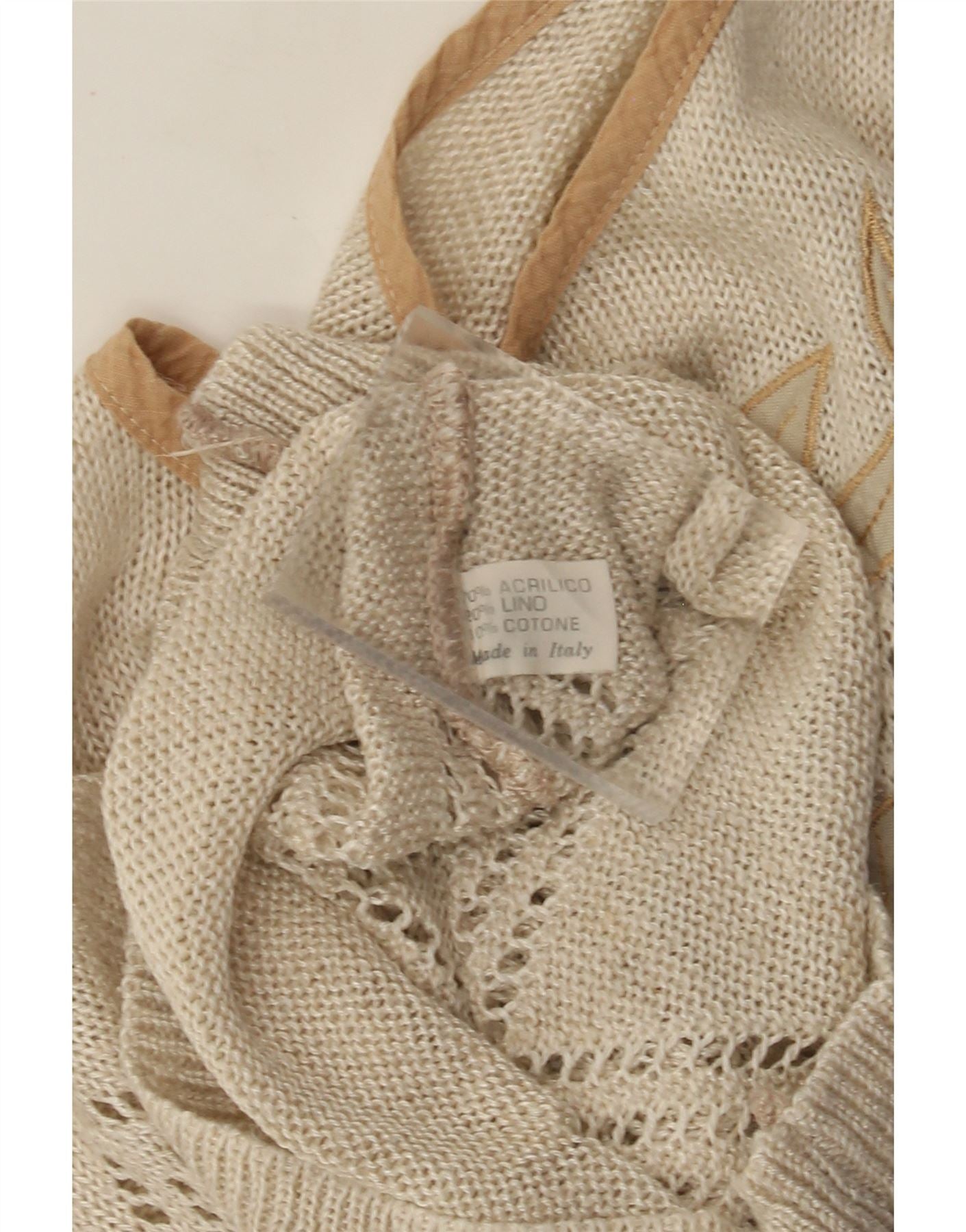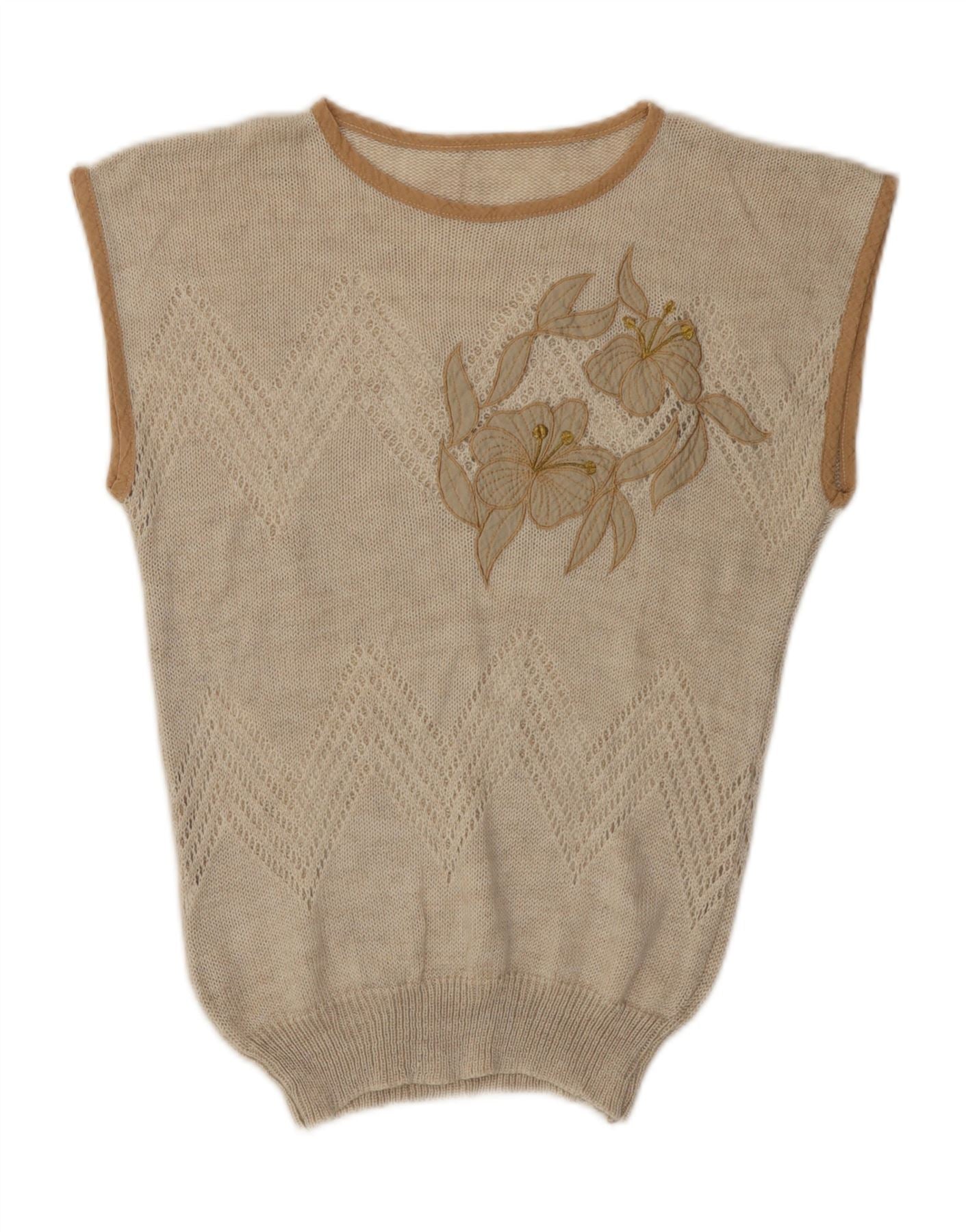 Colete feminino vintage regata UK 12 acrílico floral bege médio
