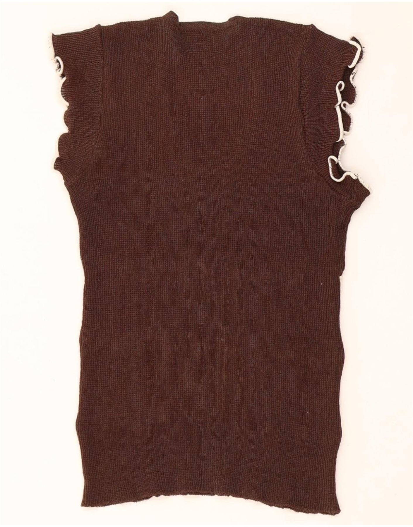 Regata feminina vintage UK 8 bloco colorido marrom pequeno