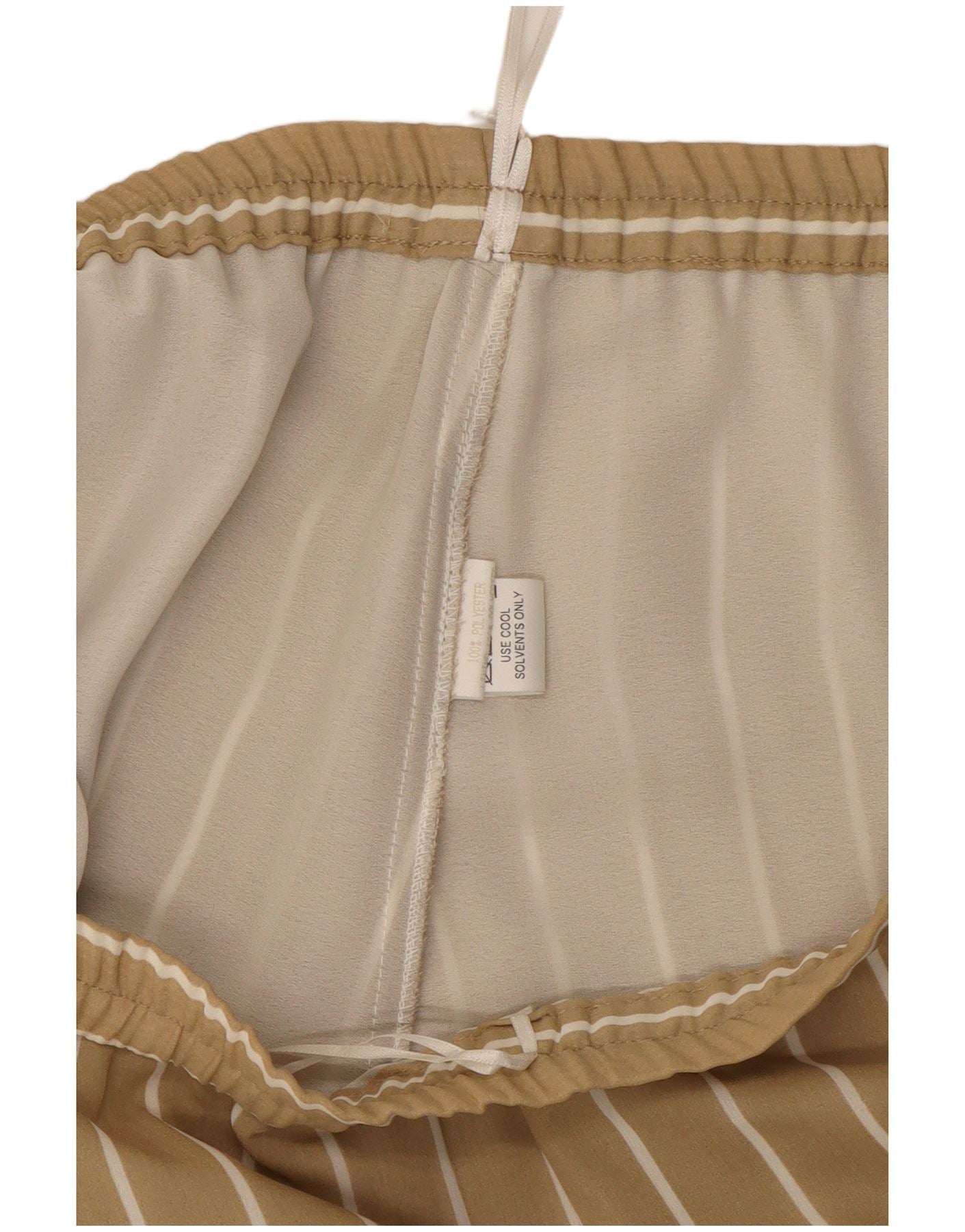 Calça casual feminina VINTAGE com perna larga W32 L31 poliéster risca de giz bege