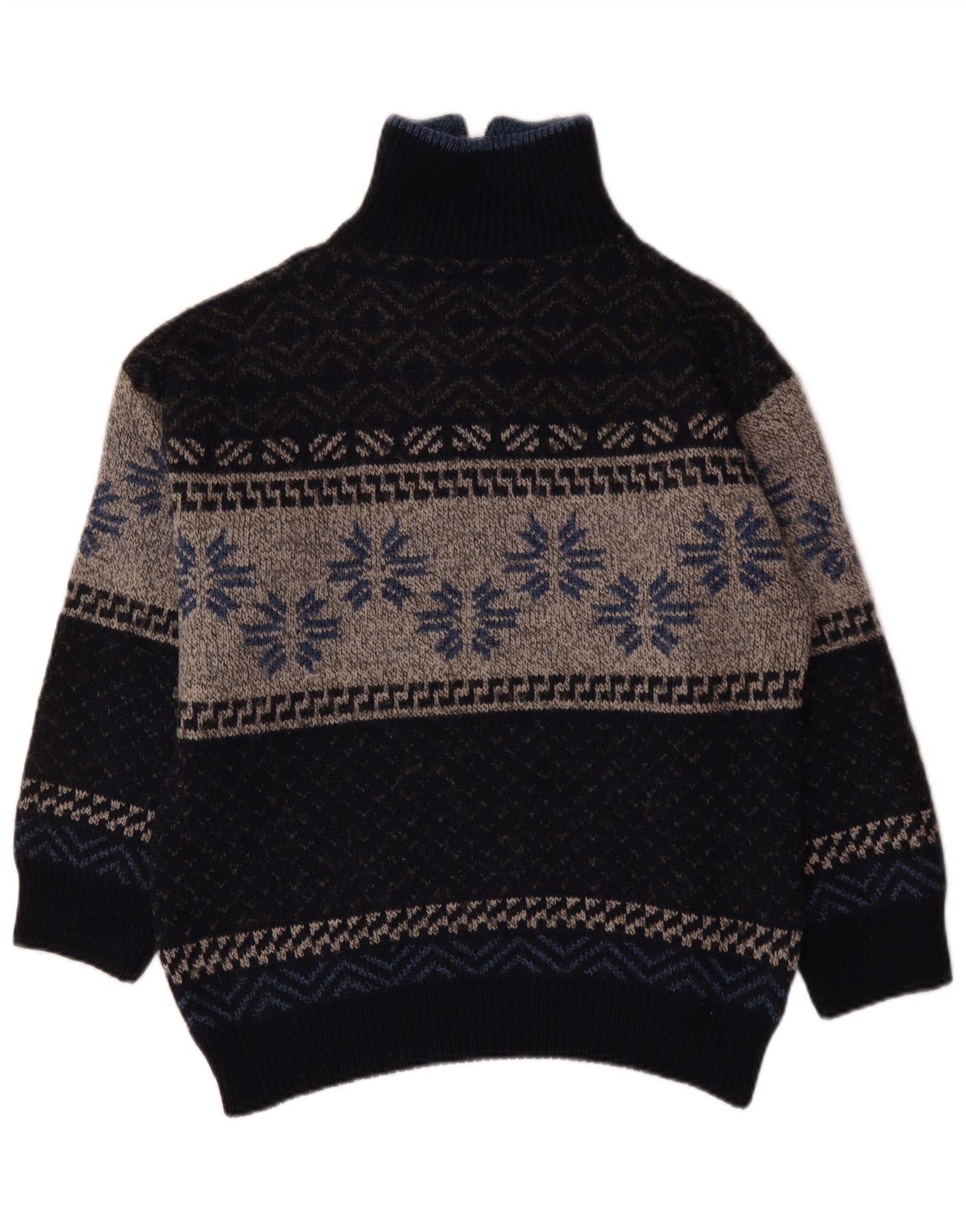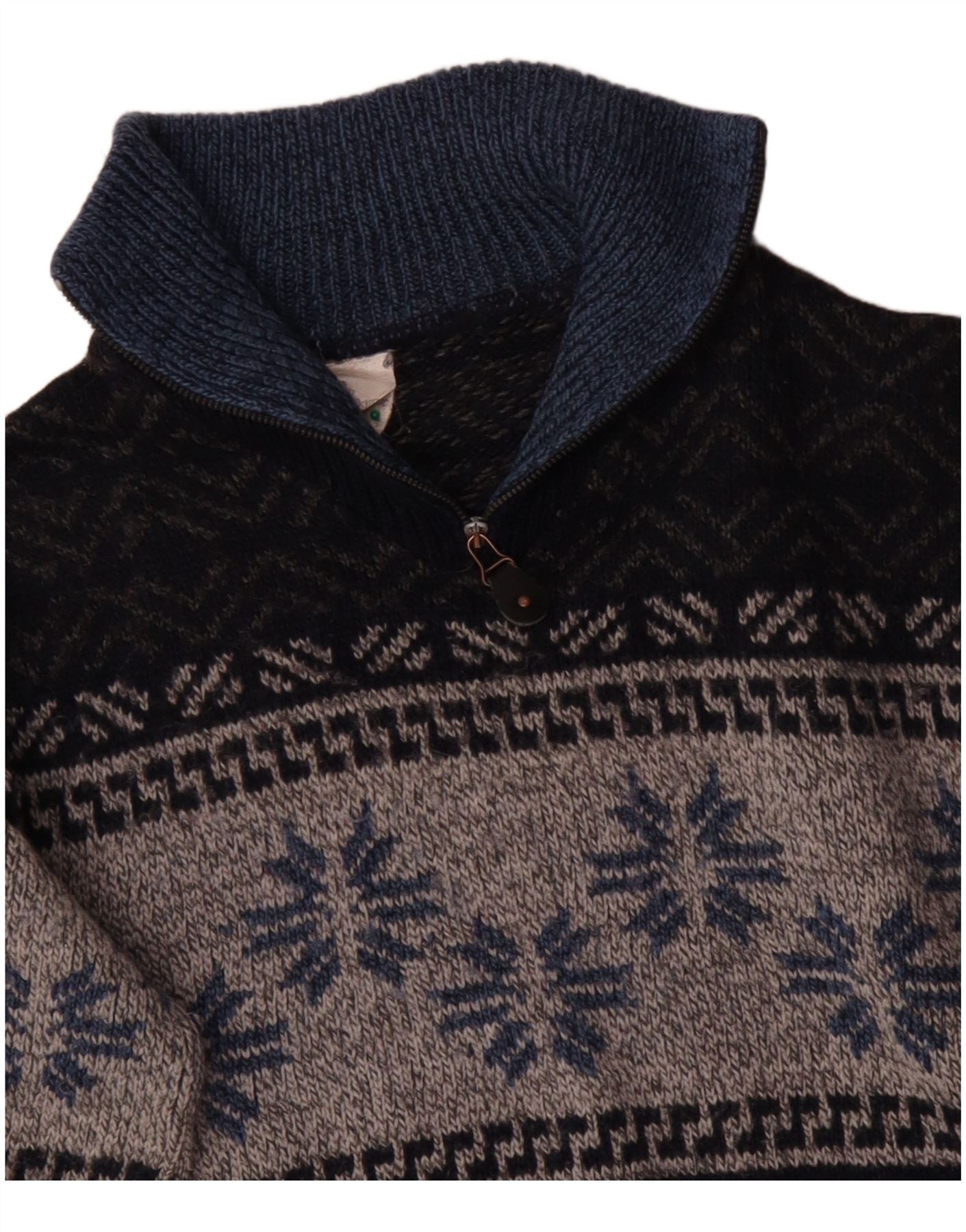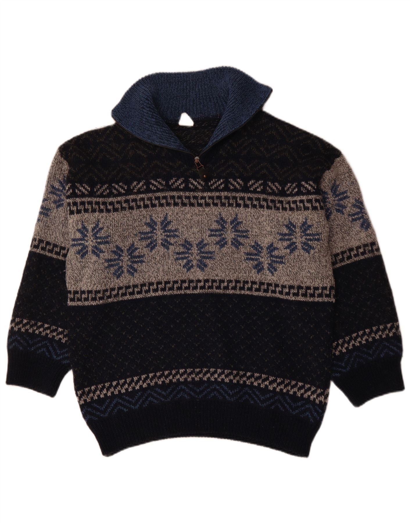 Suéter feminino VINTAGE com zíper e gola UK 18 XL azul marinho Fair Isle