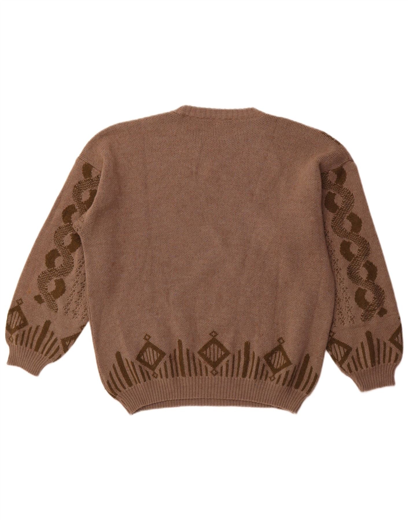 Suéter feminino VOGUE com gola redonda grande UK 18 XL marrom geométrico