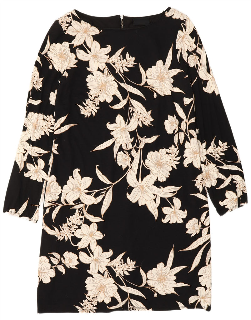WALLIS Womens Long Sleeve Shift Dress UK 12 Medium Black Floral Viscose