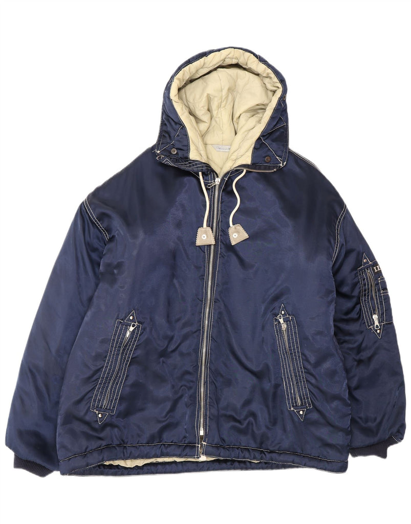 WAMPUM Mens Loose Fit Windbreaker Jacket UK 38 Medium Navy Blue Nylon