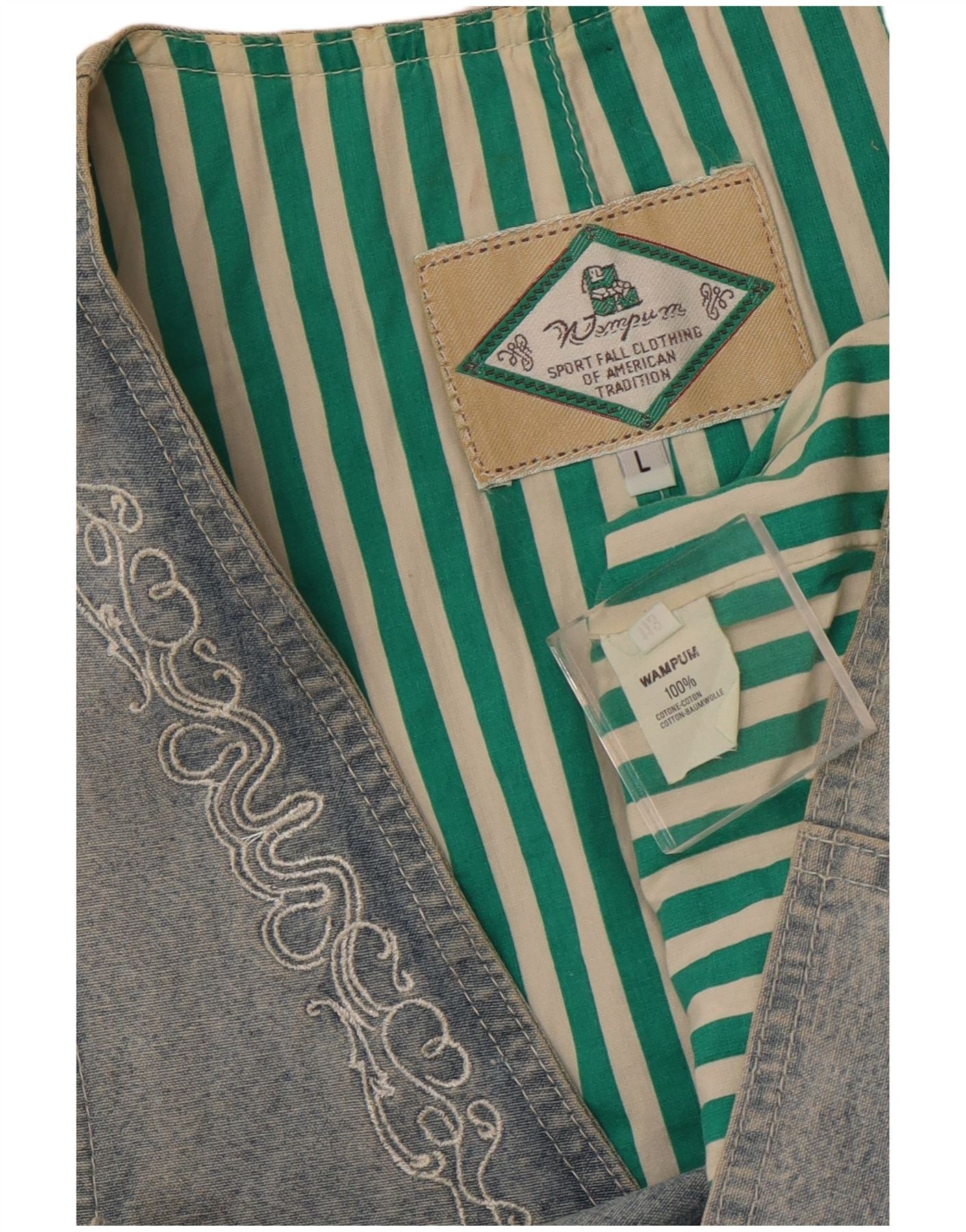 Colete feminino WAMPUM UK 16 grande algodão azul