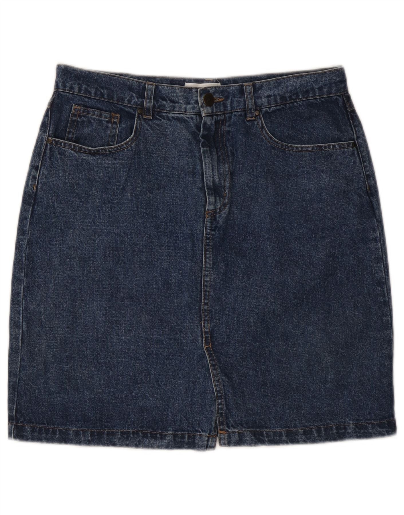 WAREHOUSE Saia jeans feminina UK 10 pequena W27 algodão azul marinho