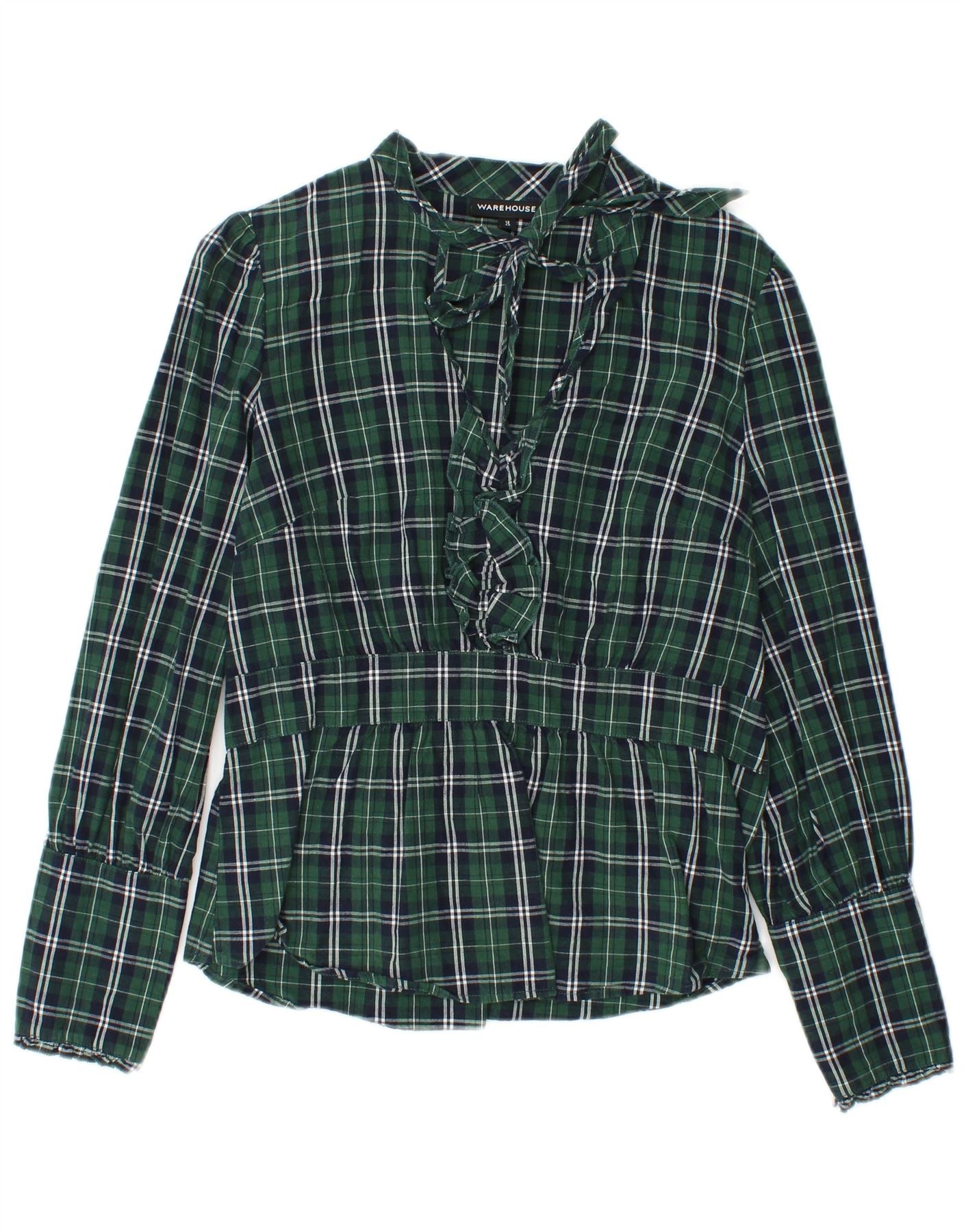 WAREHOUSE Blusa feminina de manga comprida UK 12 xadrez verde médio