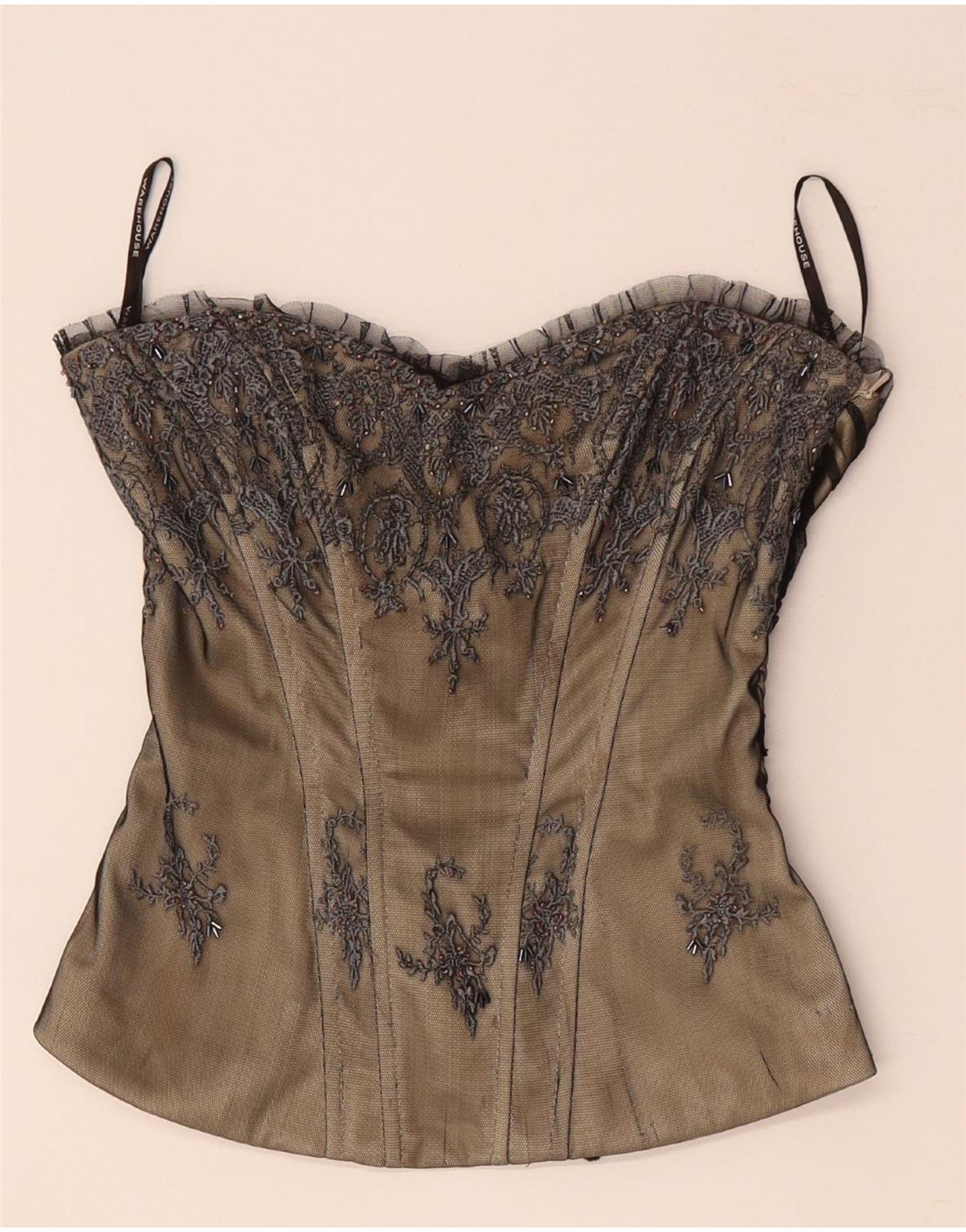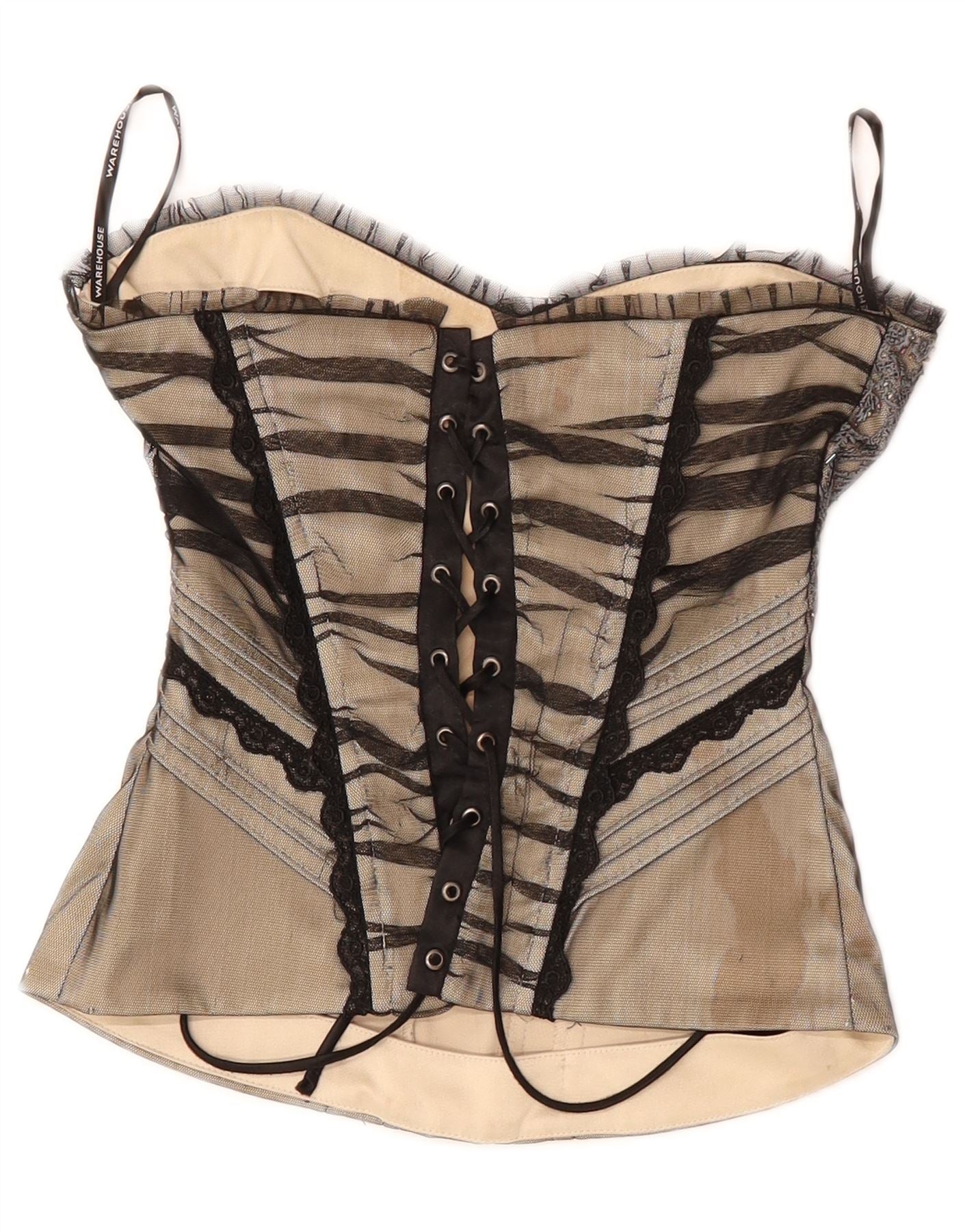 Top espartilho feminino sem ombro WAREHOUSE Reino Unido 8 pequeno poliéster floral bege